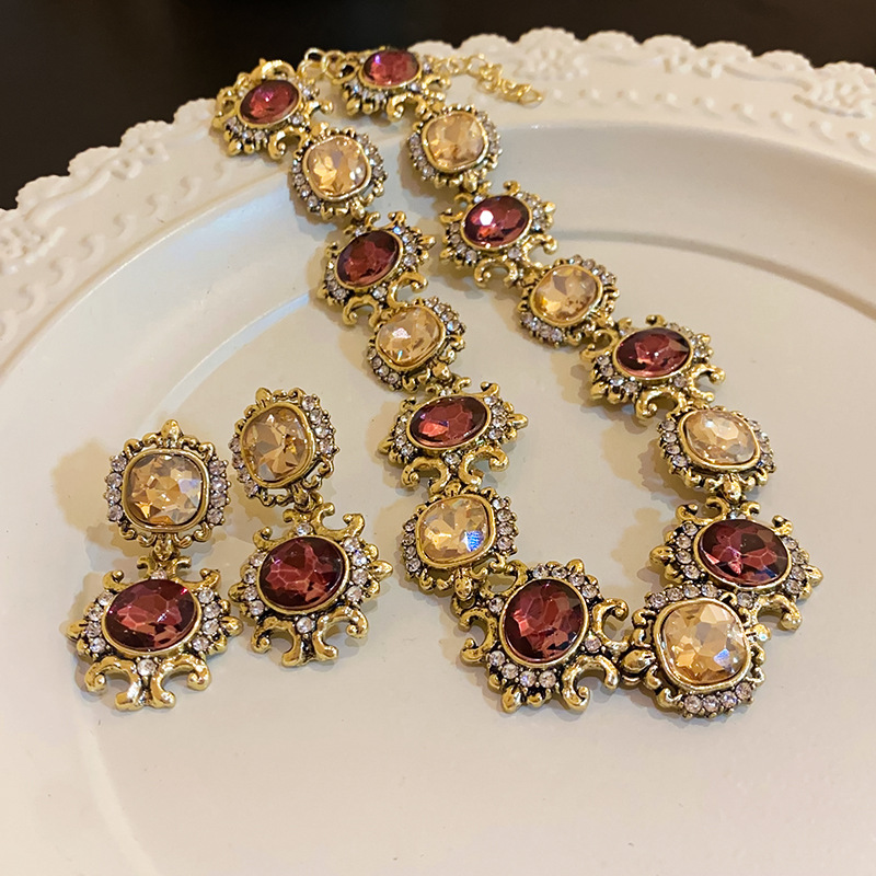Colors: 1 Necklace—Gold–Purple, 2 Silver Stud Earrings—Gold–Purple,