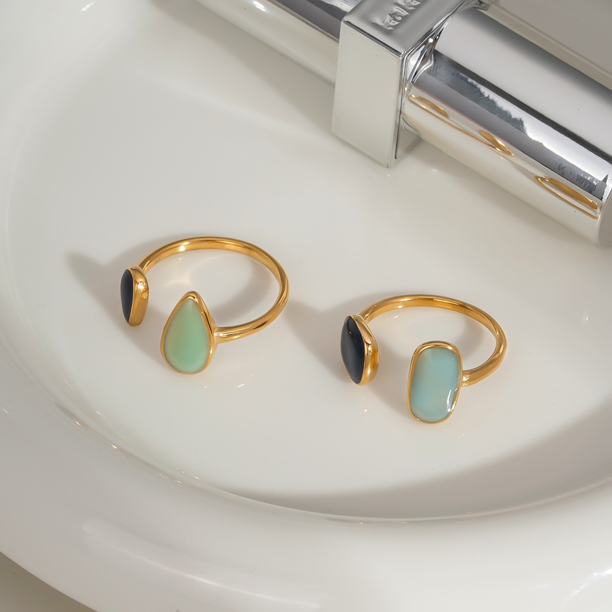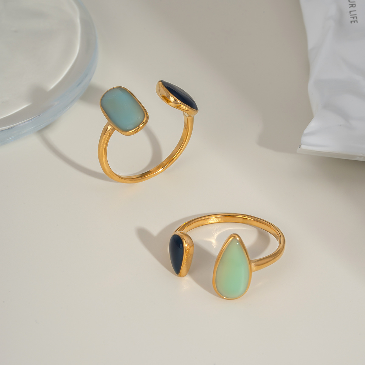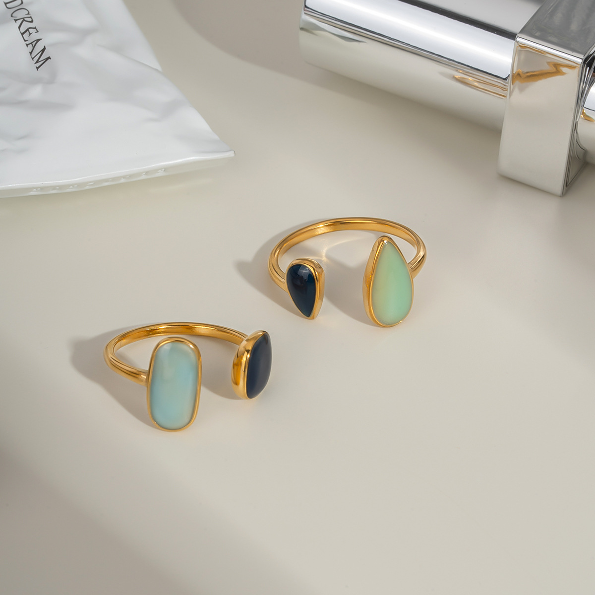 Retro Stainless Steel Oil Dripping Color Open Ring 18K Gold Simple