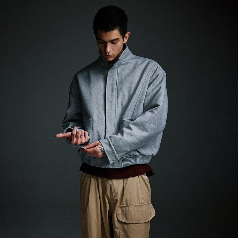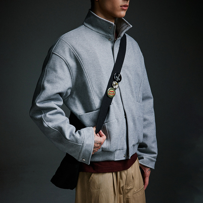 Retro Stand-up Collar Cotton-padded Men's Thick Woolen Coat