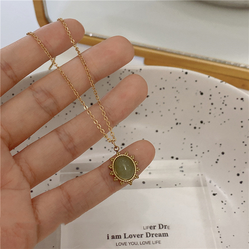 5Set: Gold Titanium Steel Green + Gold Titanium Steel Necklace