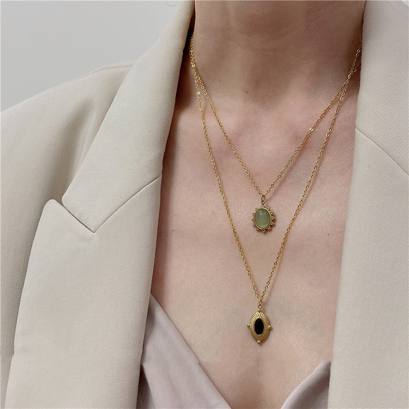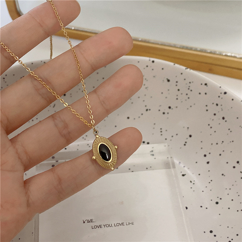 Color: 1Set: black titanium steel oval + golden titanium steel necklace,
