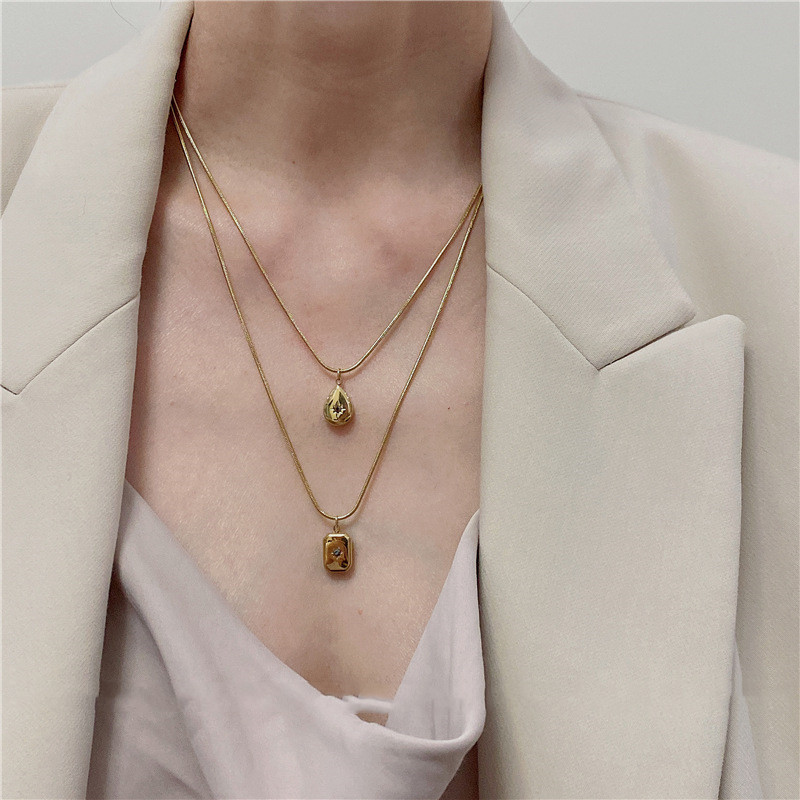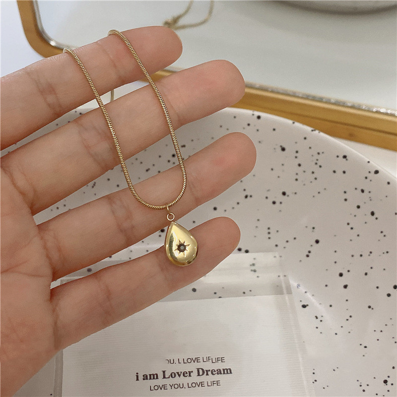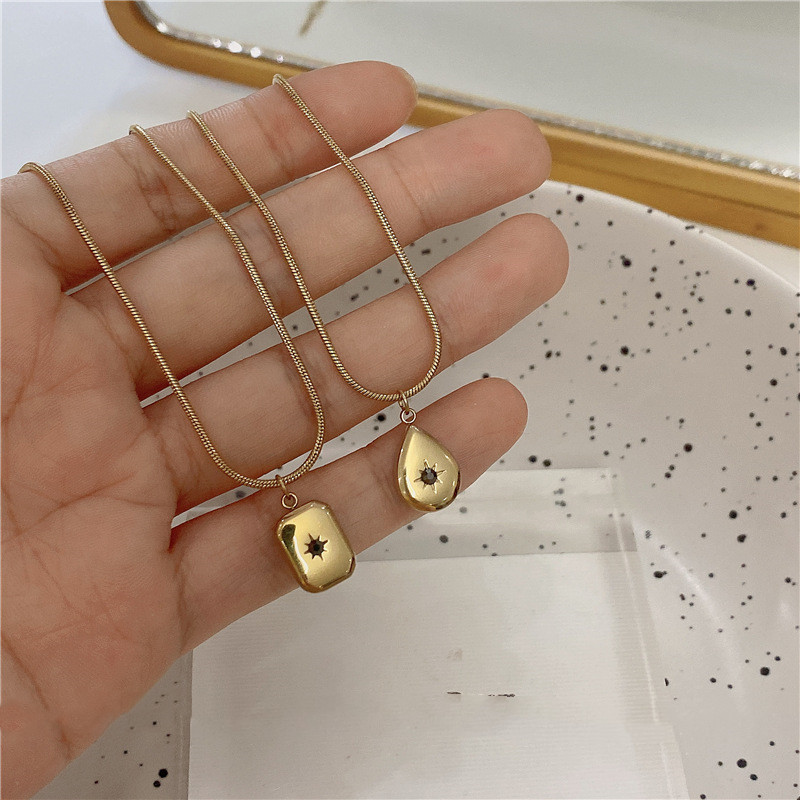 3Set: Golden Titanium Steel Water Drop Six-pointed Star + Golden Titanium Steel Necklace,