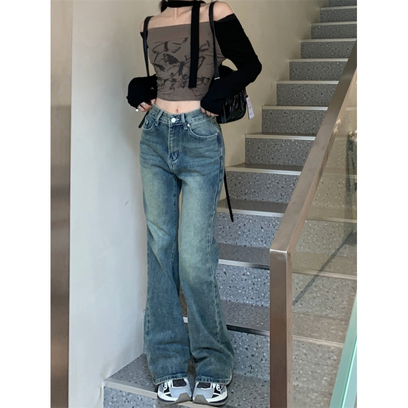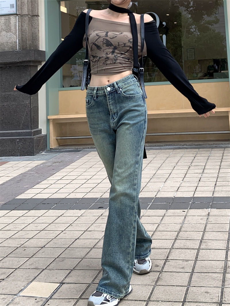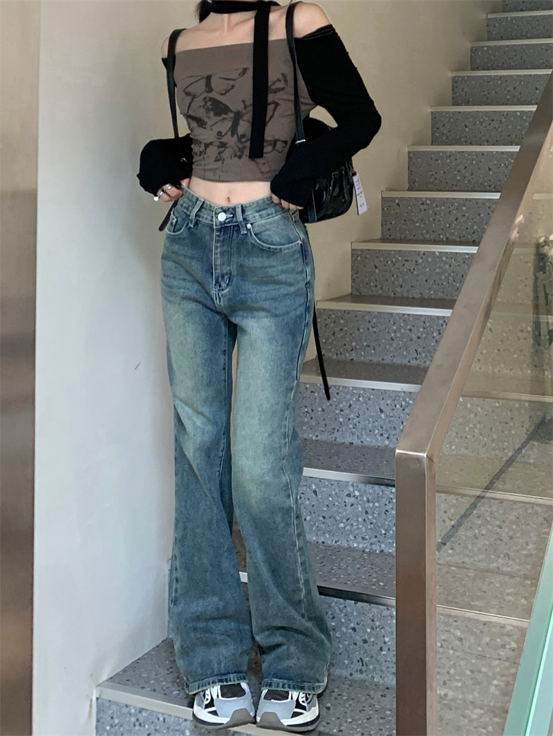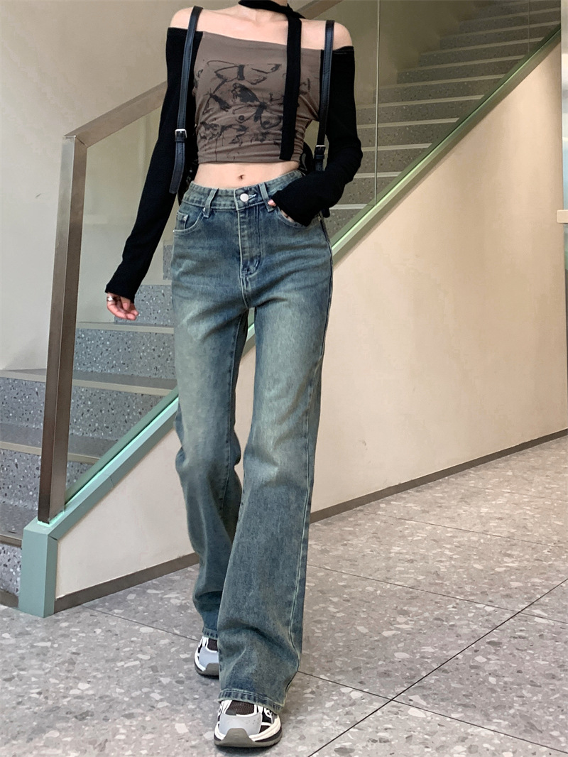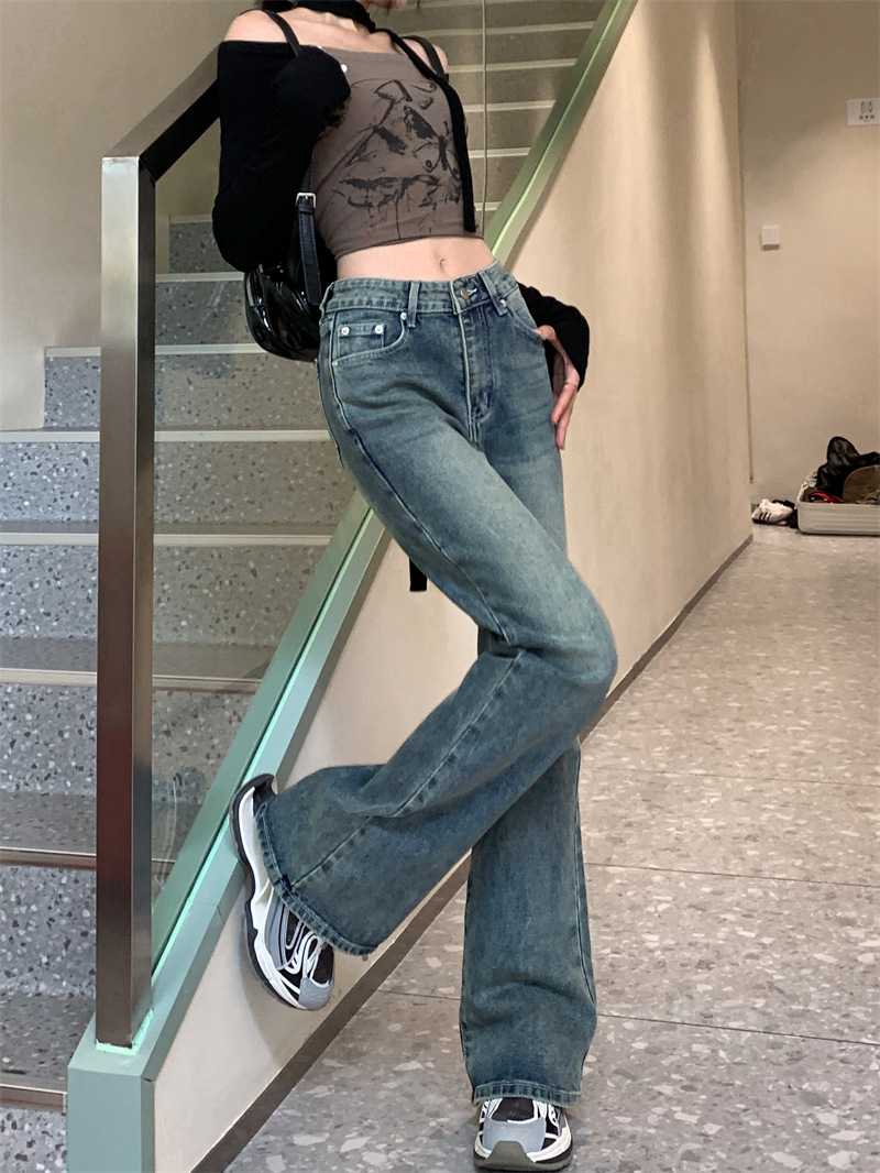 Retro Straight Jeans High Waist Wide Leg Trousers