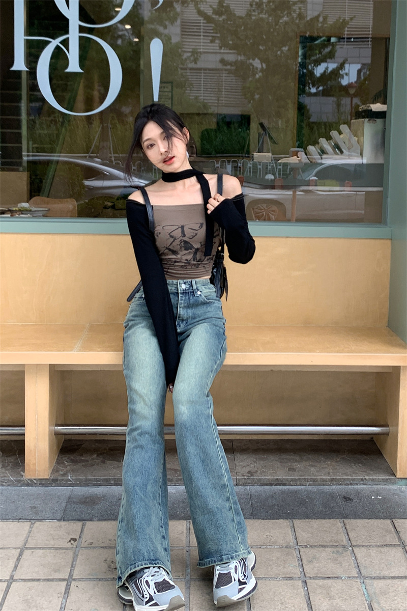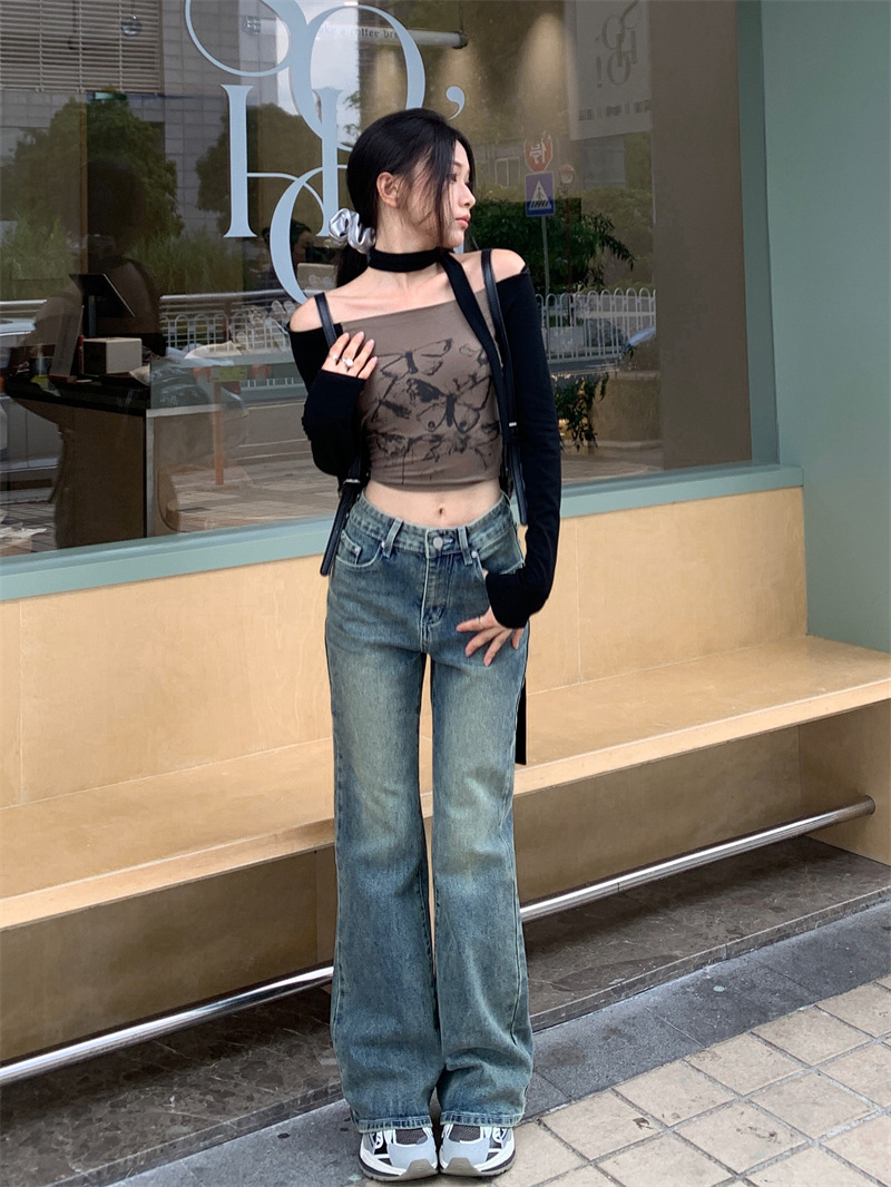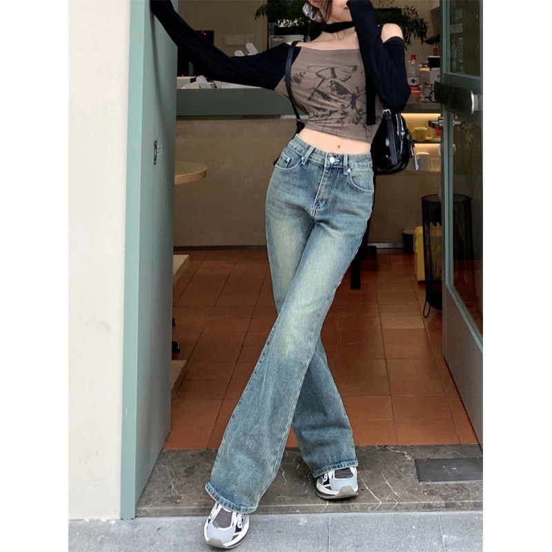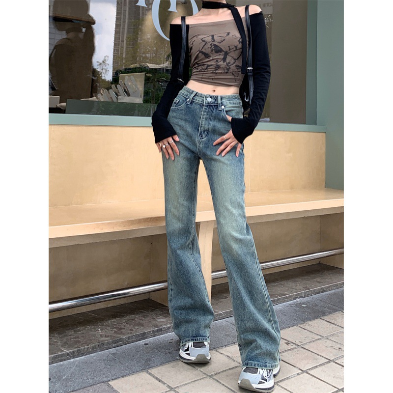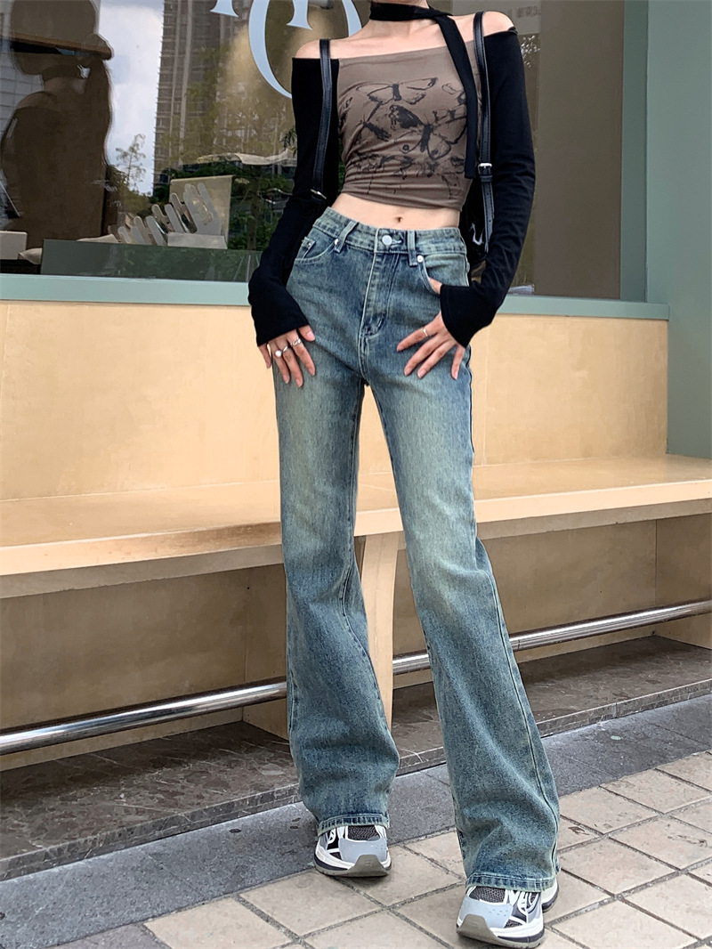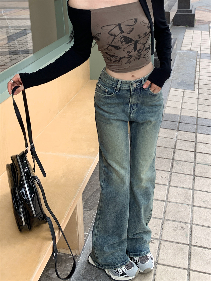 Retro Straight Jeans High Waist Wide Leg Trousers