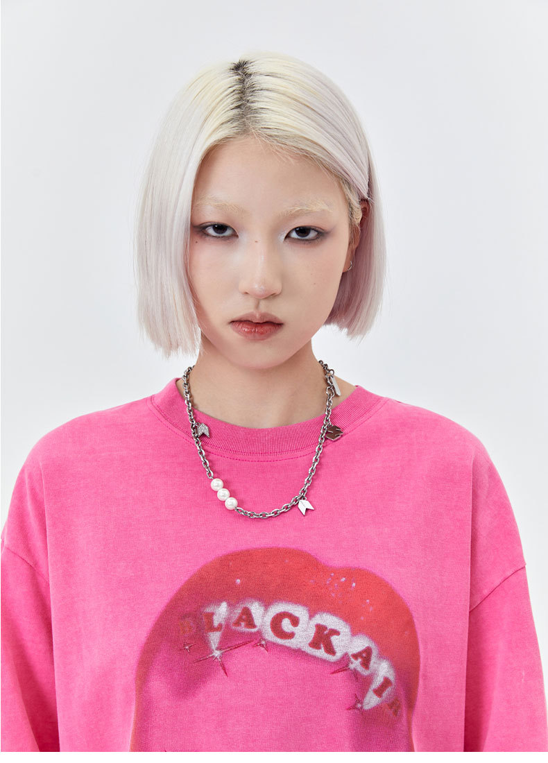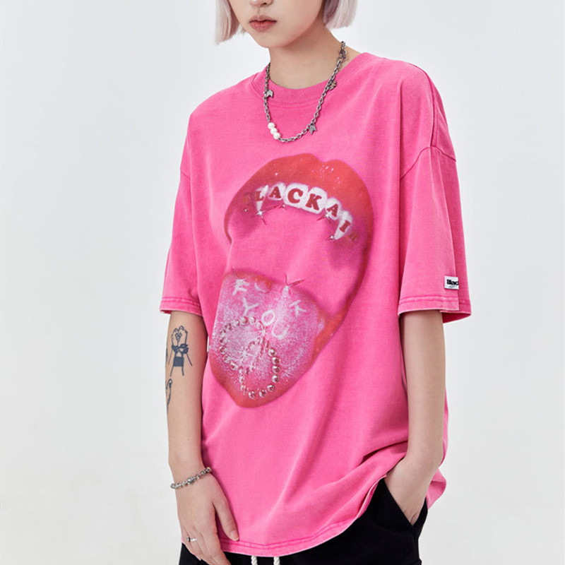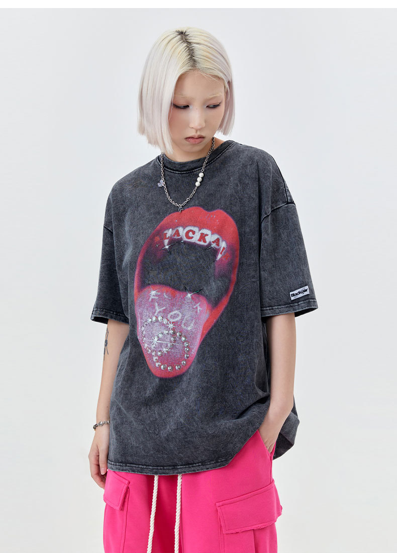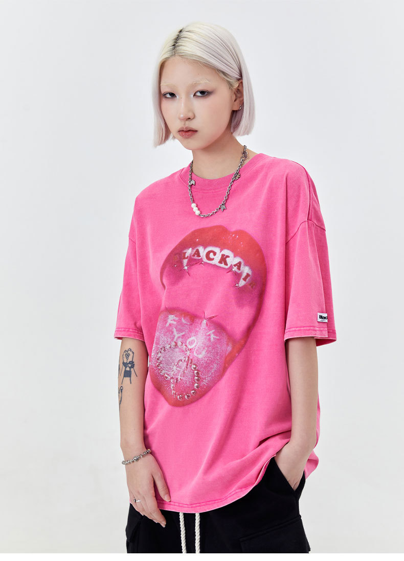 Retro Street Men's Red Lips Printed Short-sleeved T-shirt