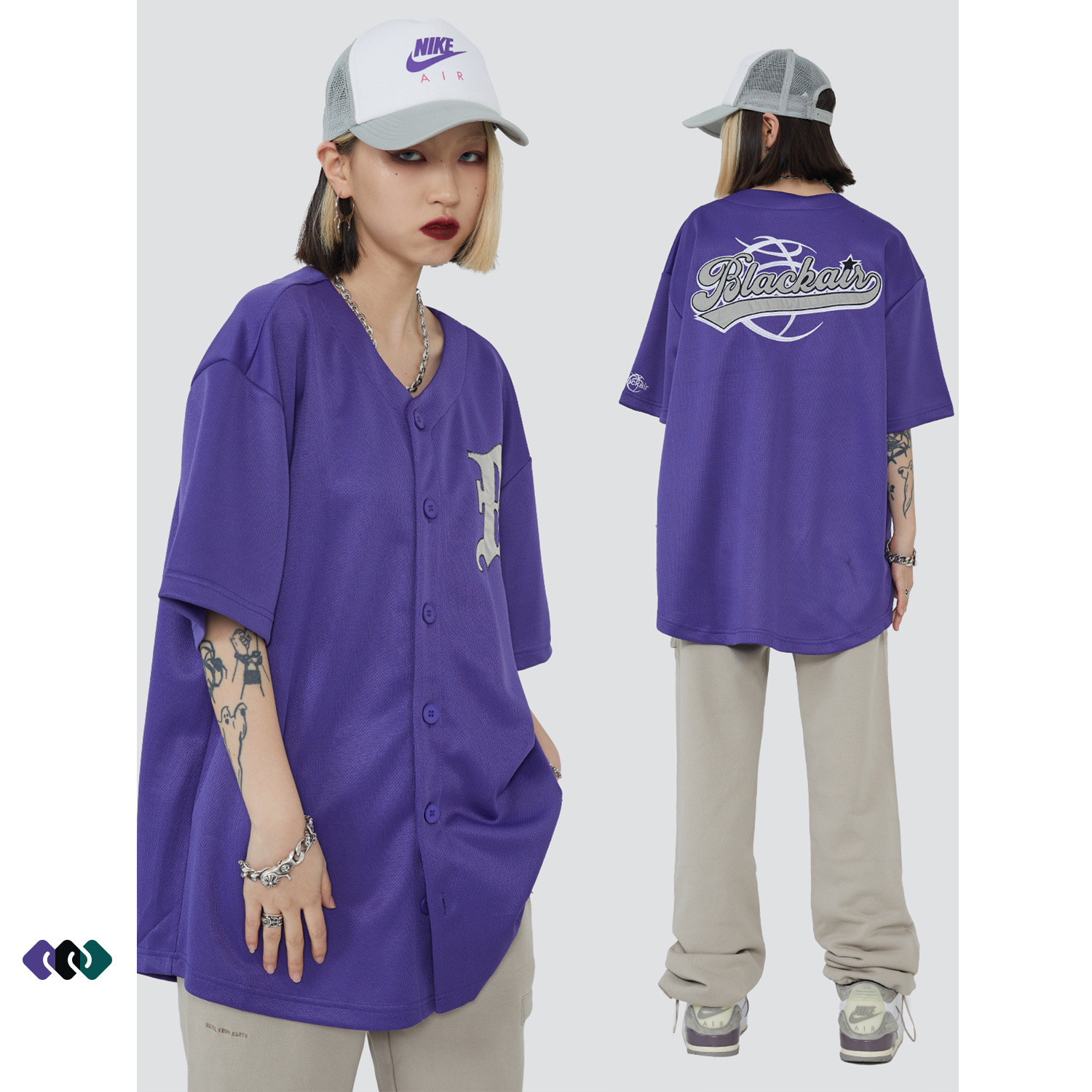 Colour: purple, green, black
