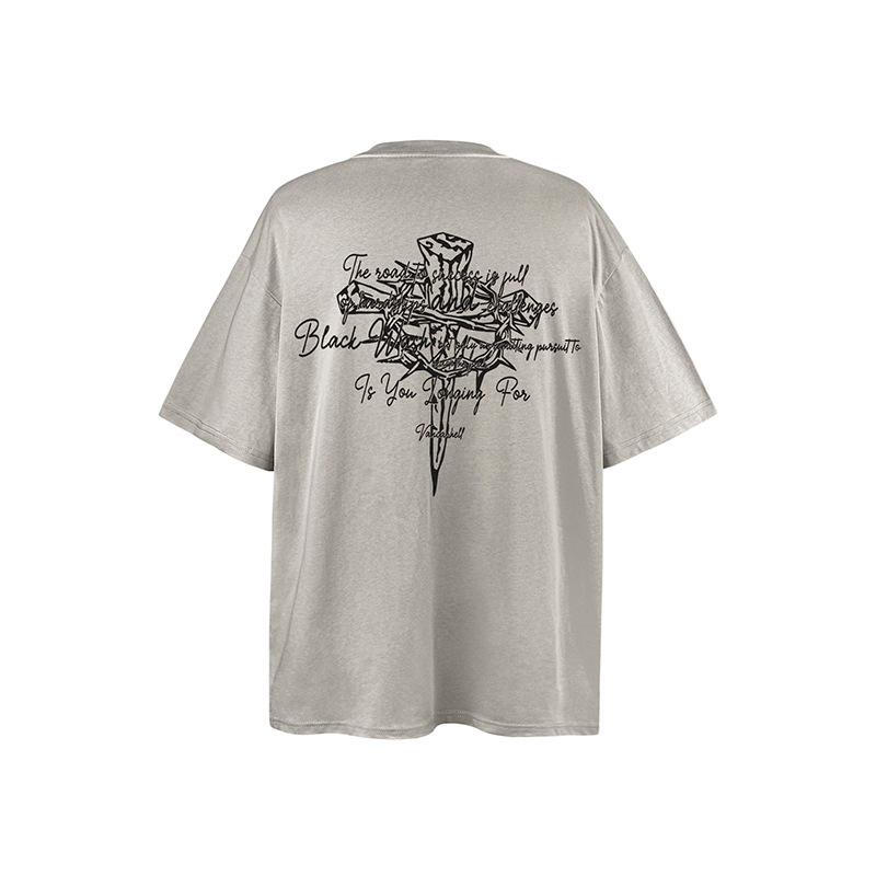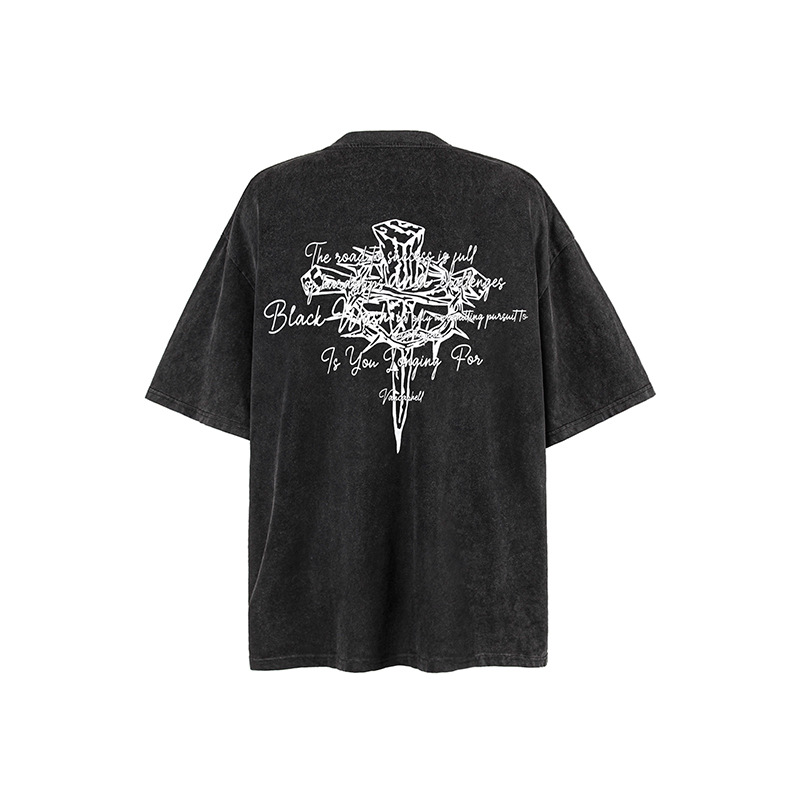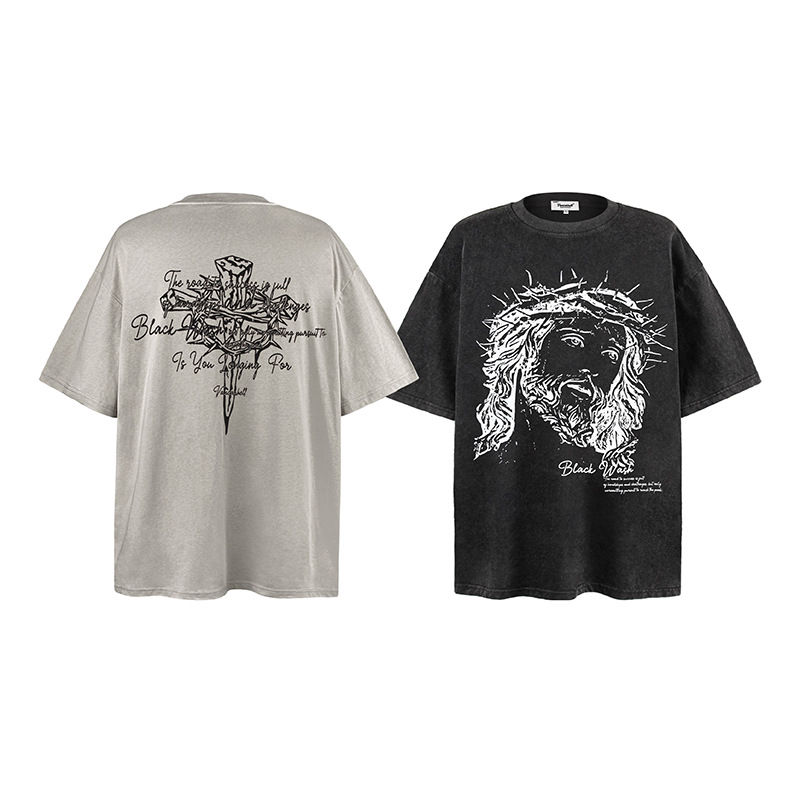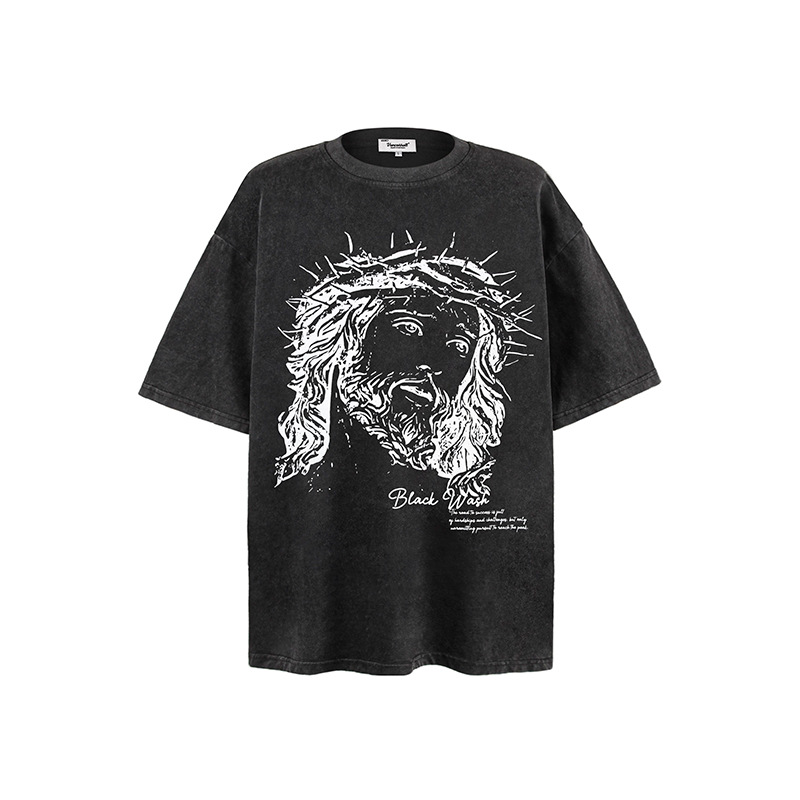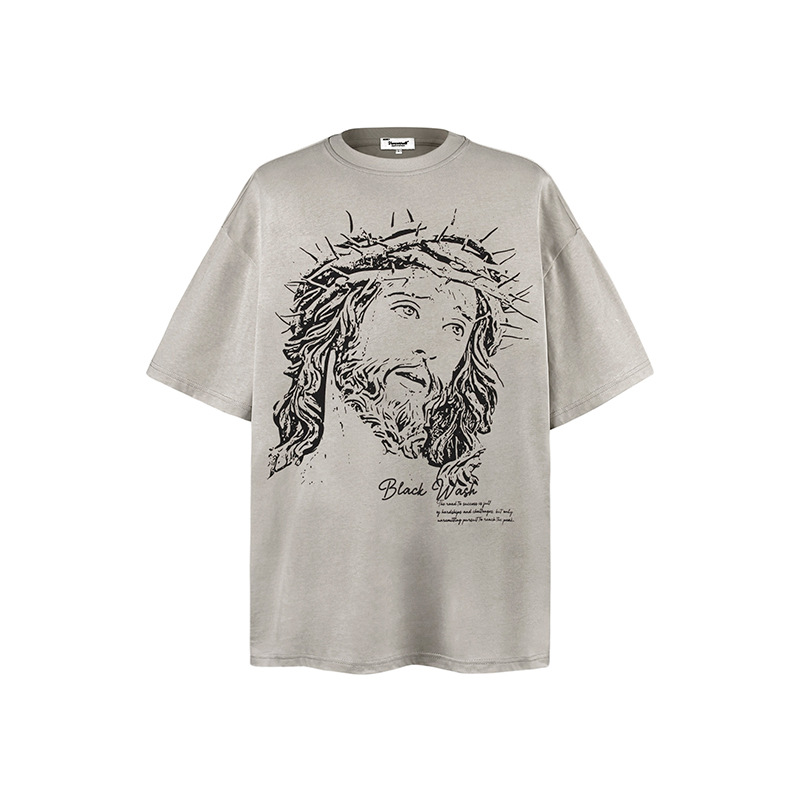 Retro Street Washed Distressed Portrait Printing Short Sleeve