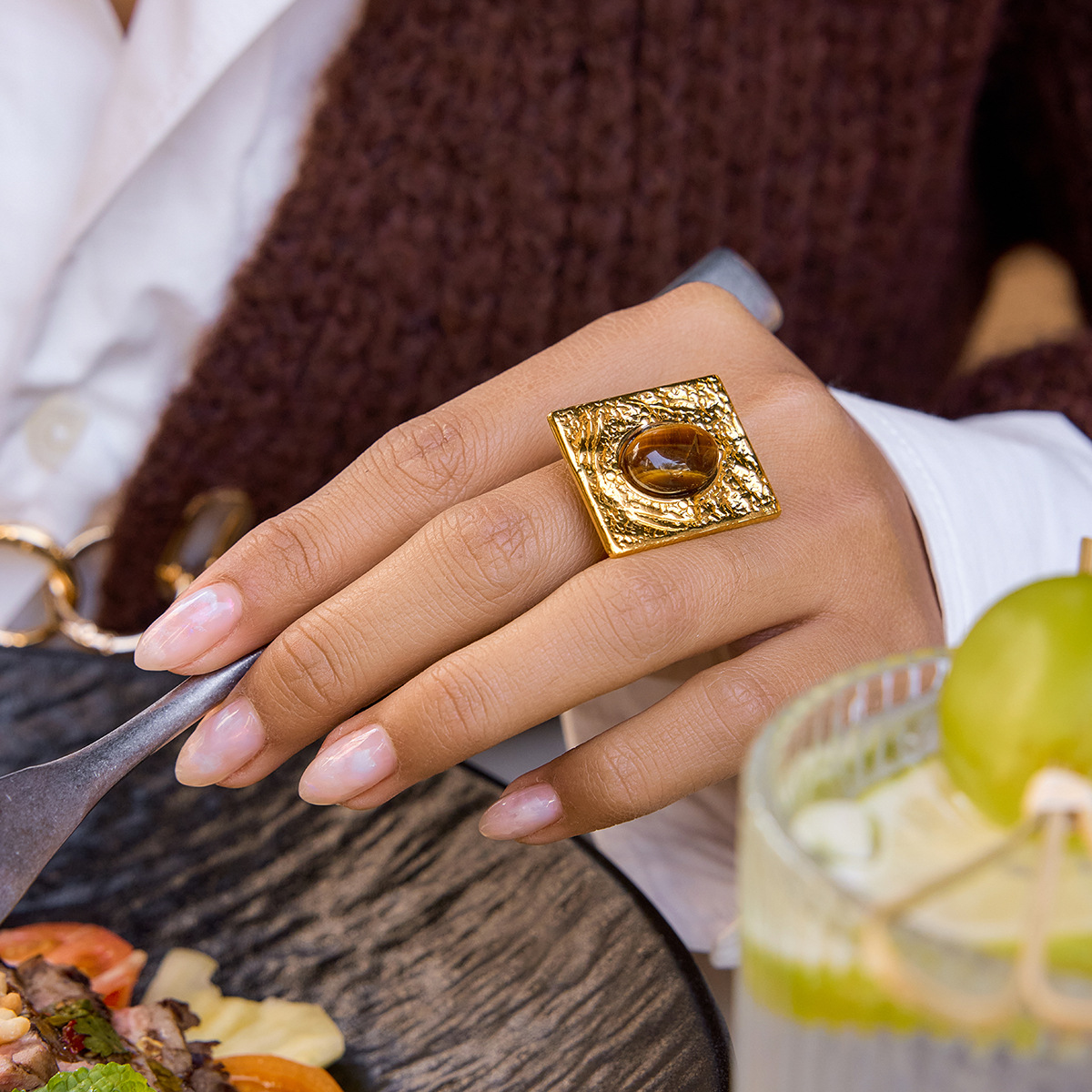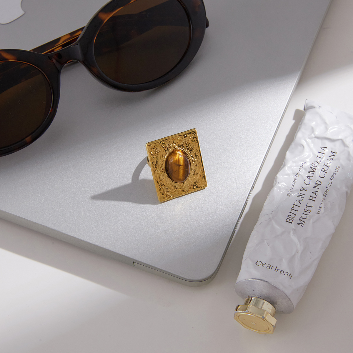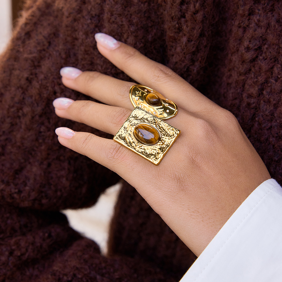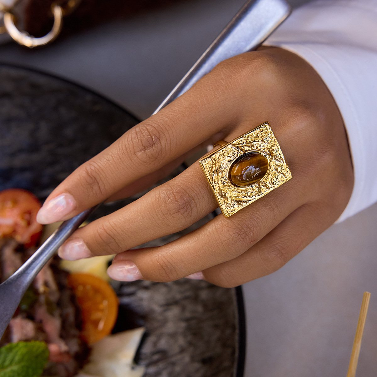 Retro-style 18K Gold Stainless Steel Titanium Ring For Women