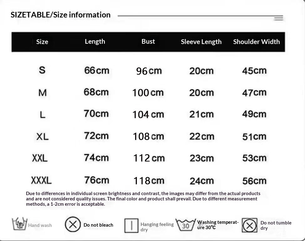 1. Asian sizes are 1 to 2 sizes smaller than European and American people. Choose the larger size if your size between two sizes. Please allow 2-3cm differences due to manual measurement. 2. Please check the size chart carefully before you buy the item, if you don't know how to choose size, please contact our customer service. 3.As you know, the different computers display colors differently, the color of the actual item may vary slightly from the following images.