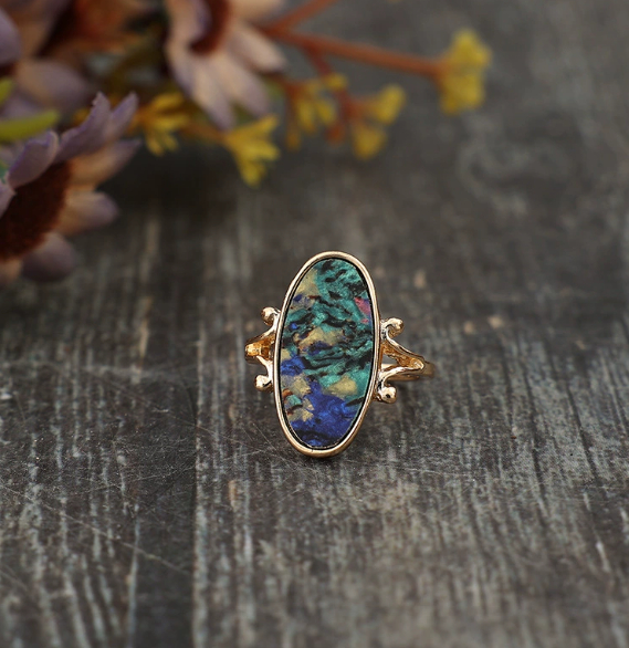 Retro Style Geometric Ring Inlaid Color Abalone Shell Personality Alloy Ring
