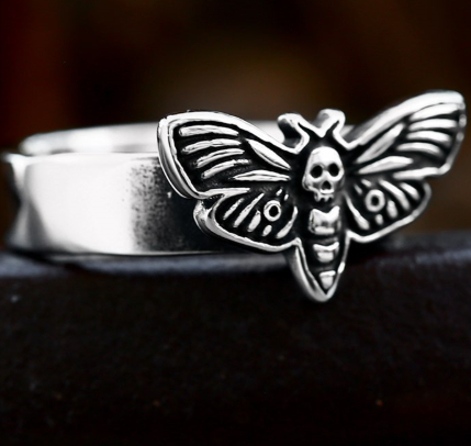 Retro Style Mens Stainless Steel Moth Ring