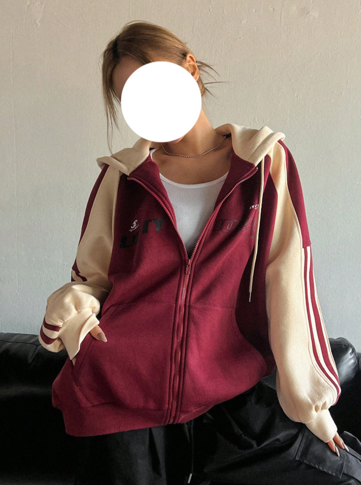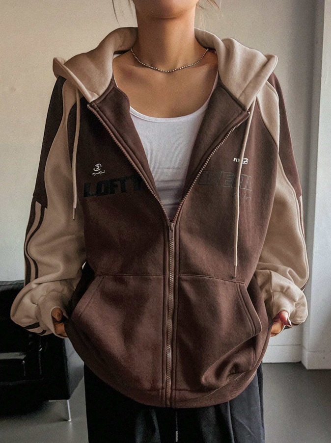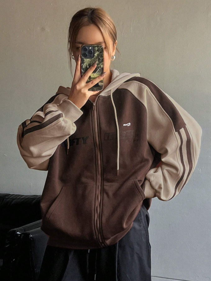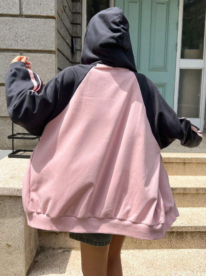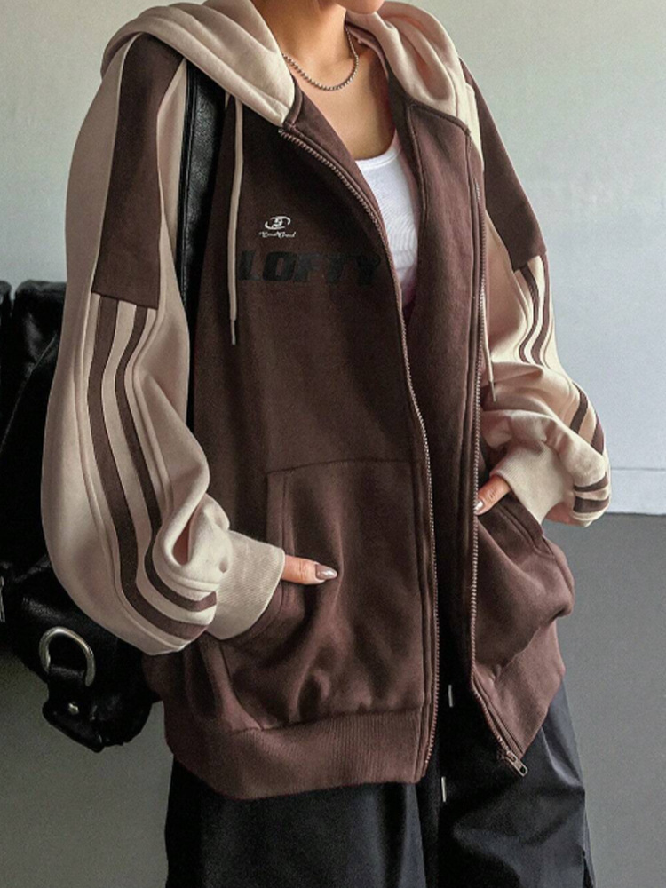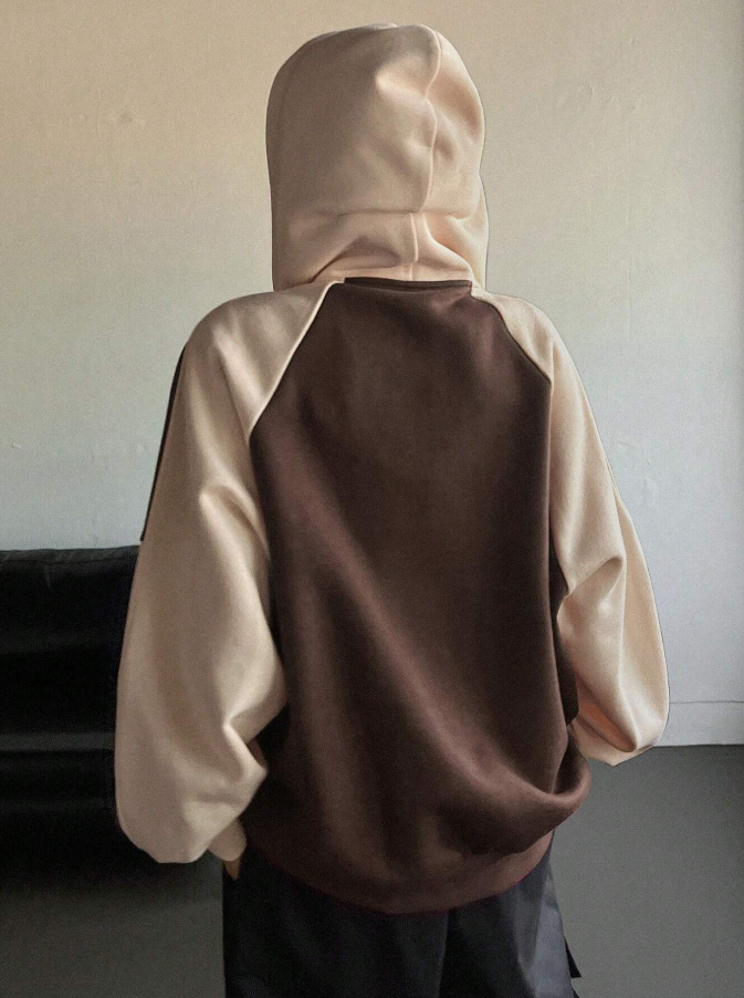 Retro Style Patchwork Color-blocked Hooded Sweatshirt For Women