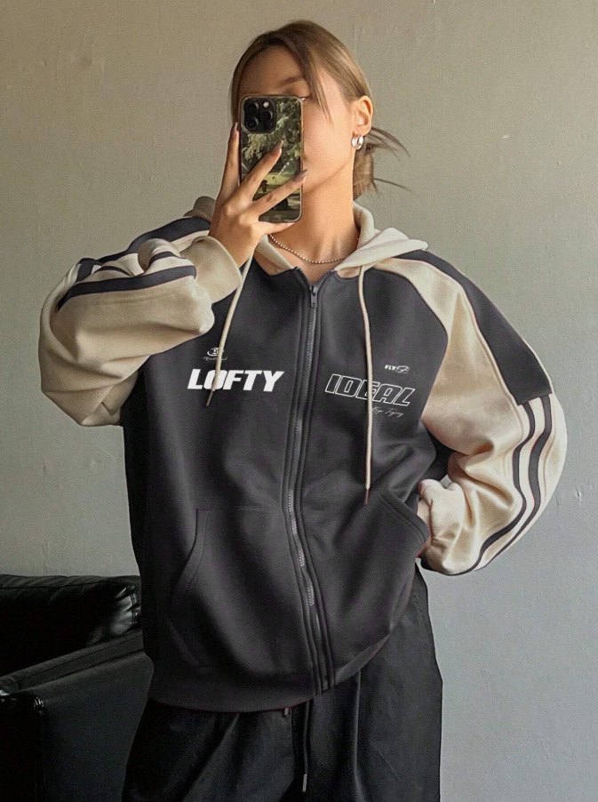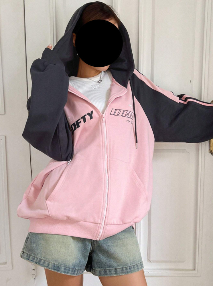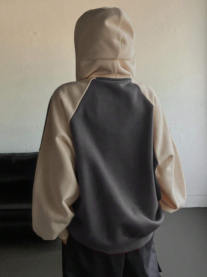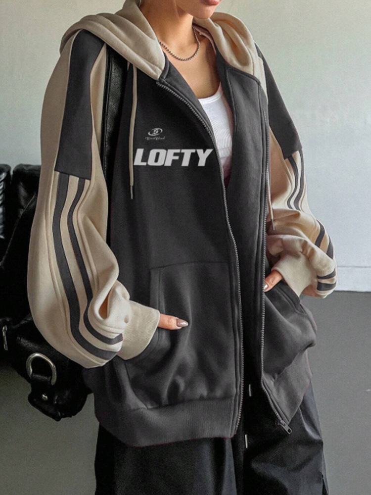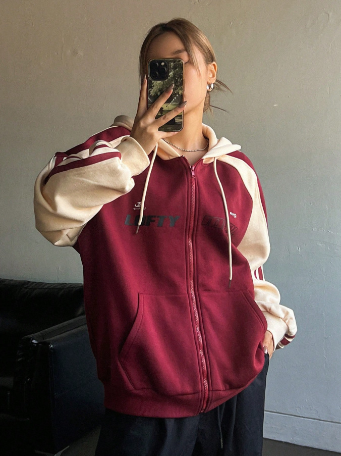 Retro Style Patchwork Color-blocked Hooded Sweatshirt For Women