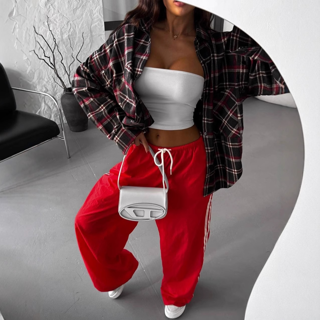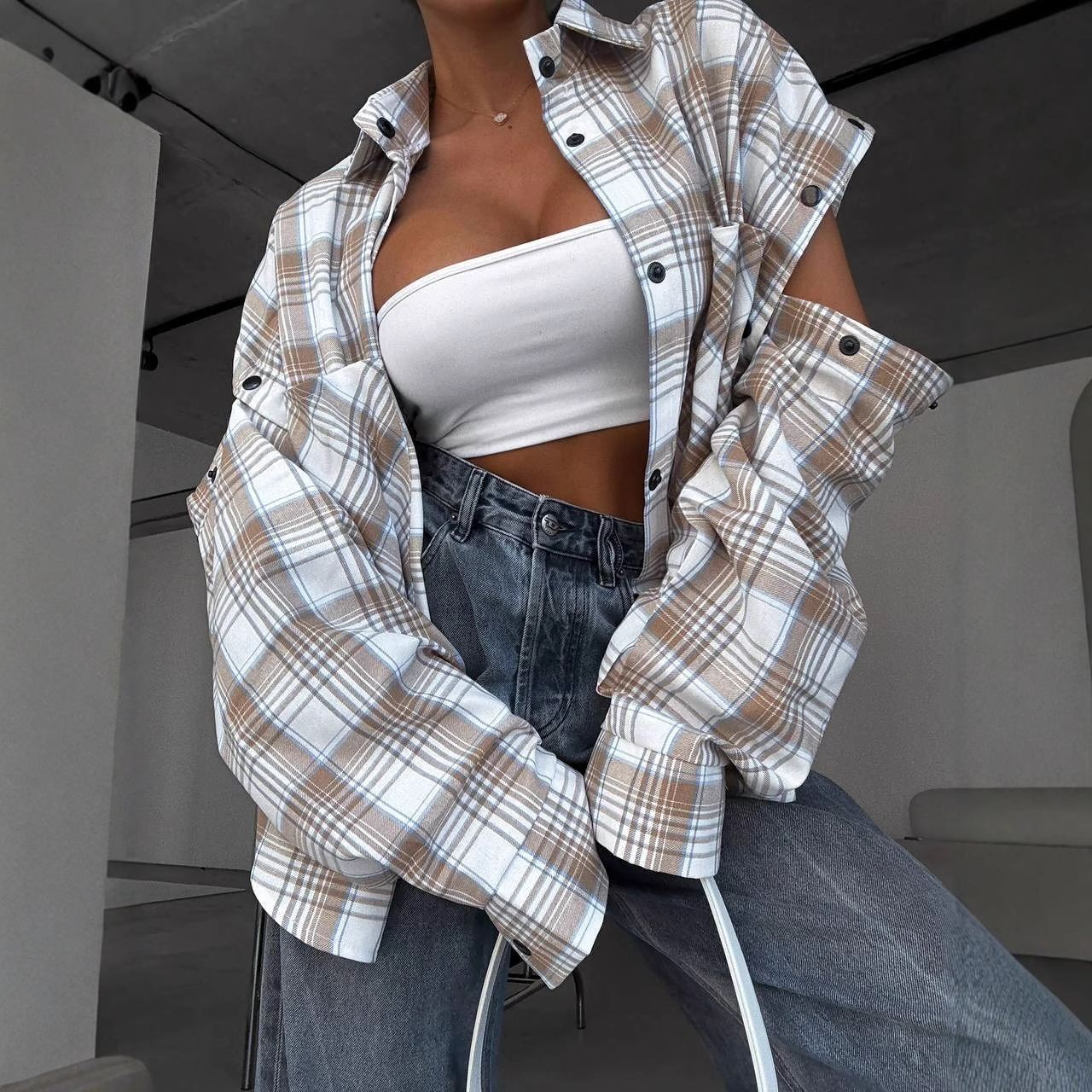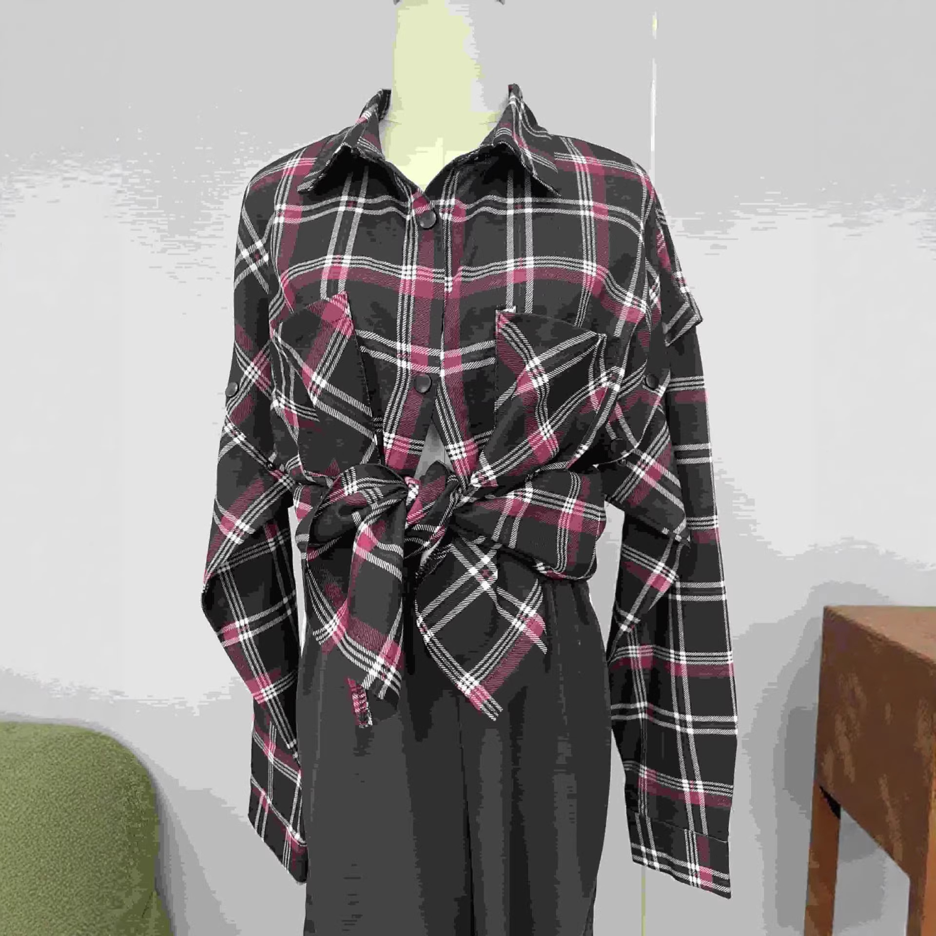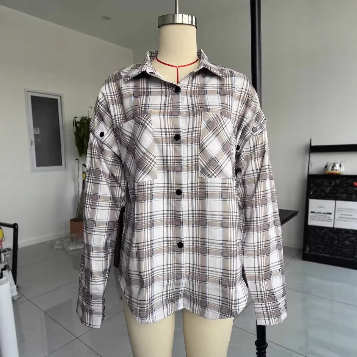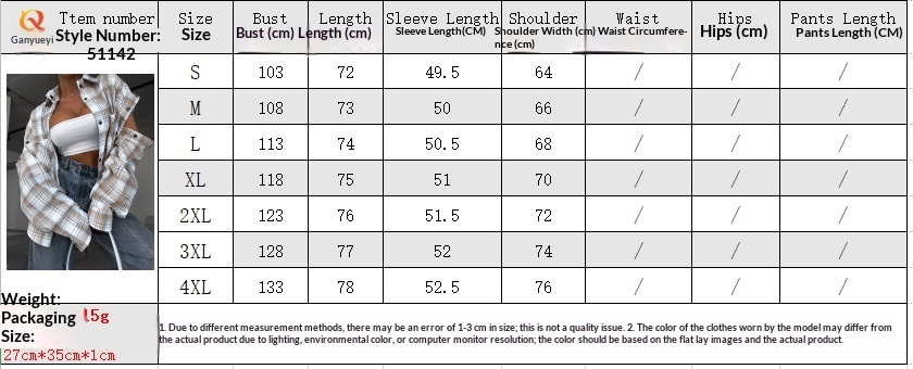 Colors: Black and Red Plaid, Coffee and Blue Plaid, Apricot and Khaki Plaid, Brown and White Plaid, White and Blue Plaid, White and Camel Plaid