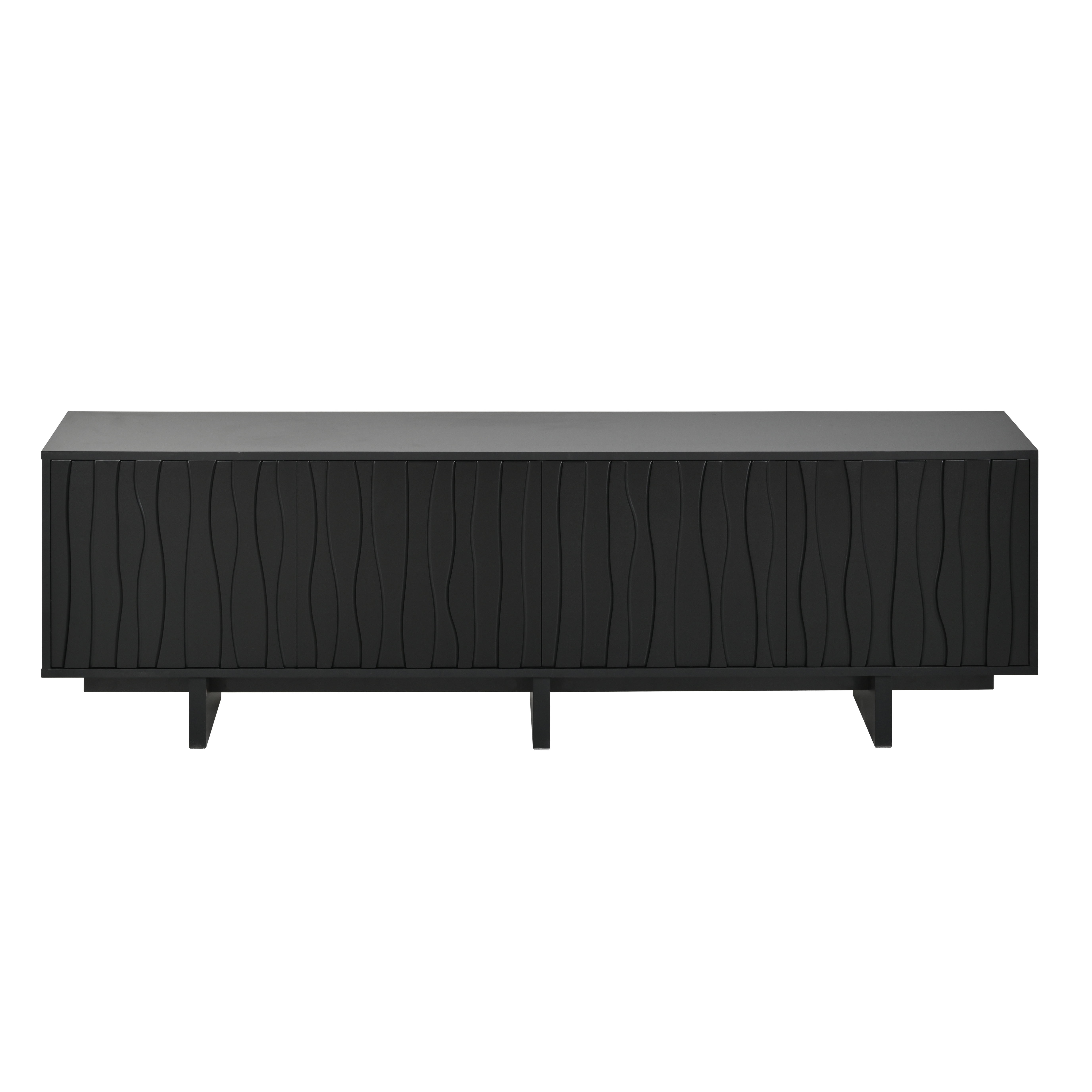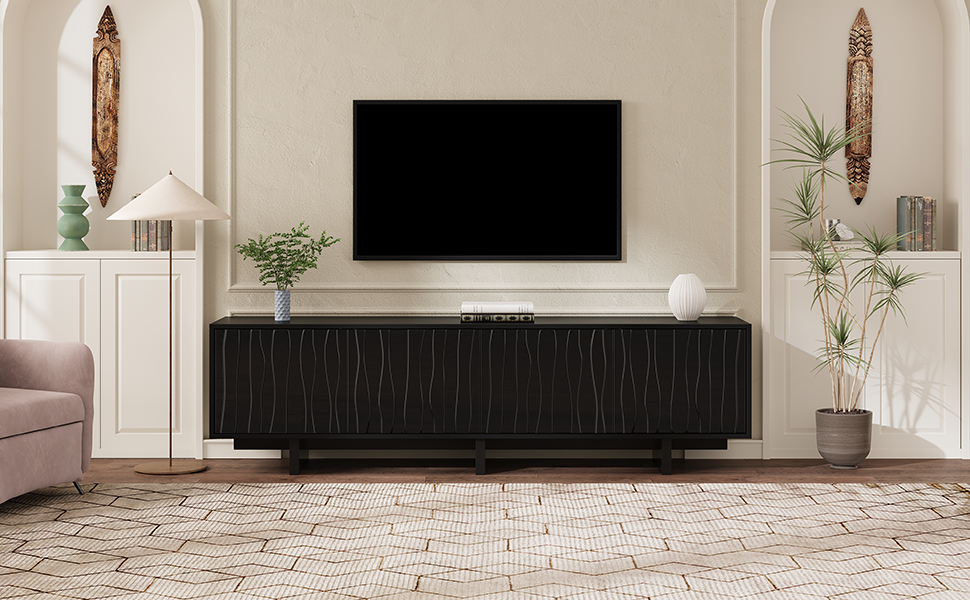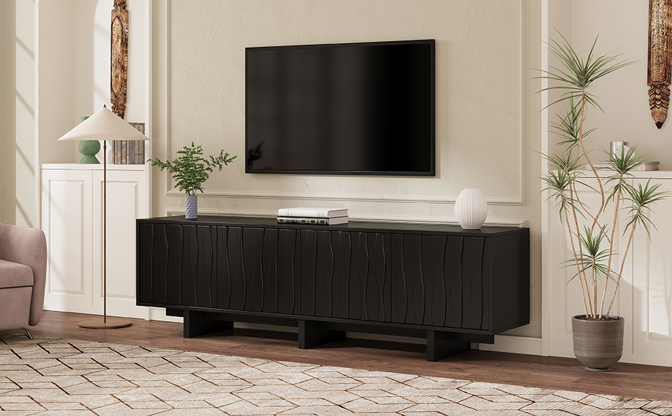 Product Name:Retro Style Wood Grain TV Stand with Wavy Door Design for TVs up to 75", Rustic Media Console with Ample Storage Space, Sturdy Base TV Cabinet with Cable Management for Living Room, Bedroom, Black