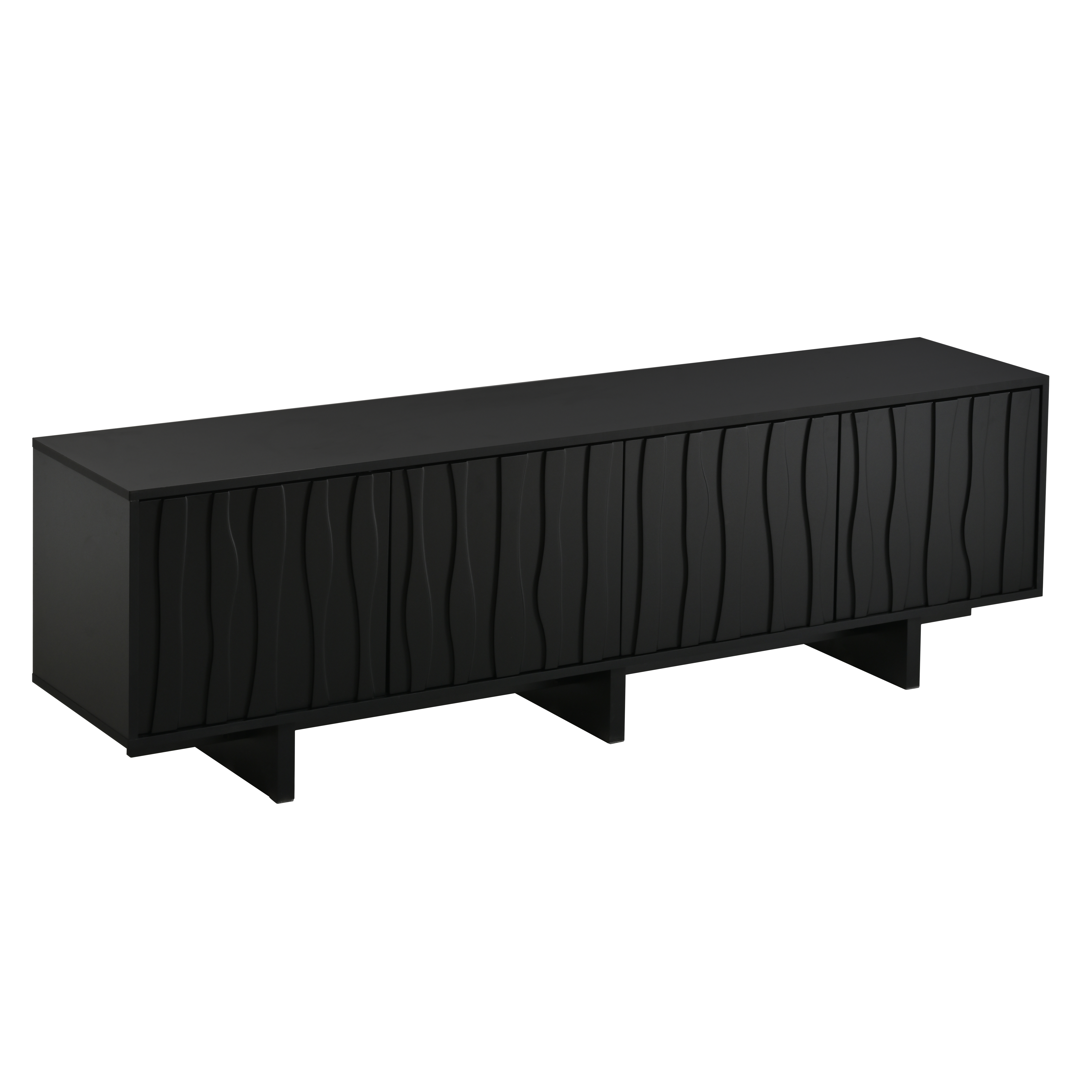 Crafted with natural wood grain patterns, this TV cabinet features a front adorned with unique wavy panel details, adding a touch of artistic flair to its design. The sturdy base with evenly spaced vertical panels adds a sense of rhythm and balance, enhancing its clean and architectural look.