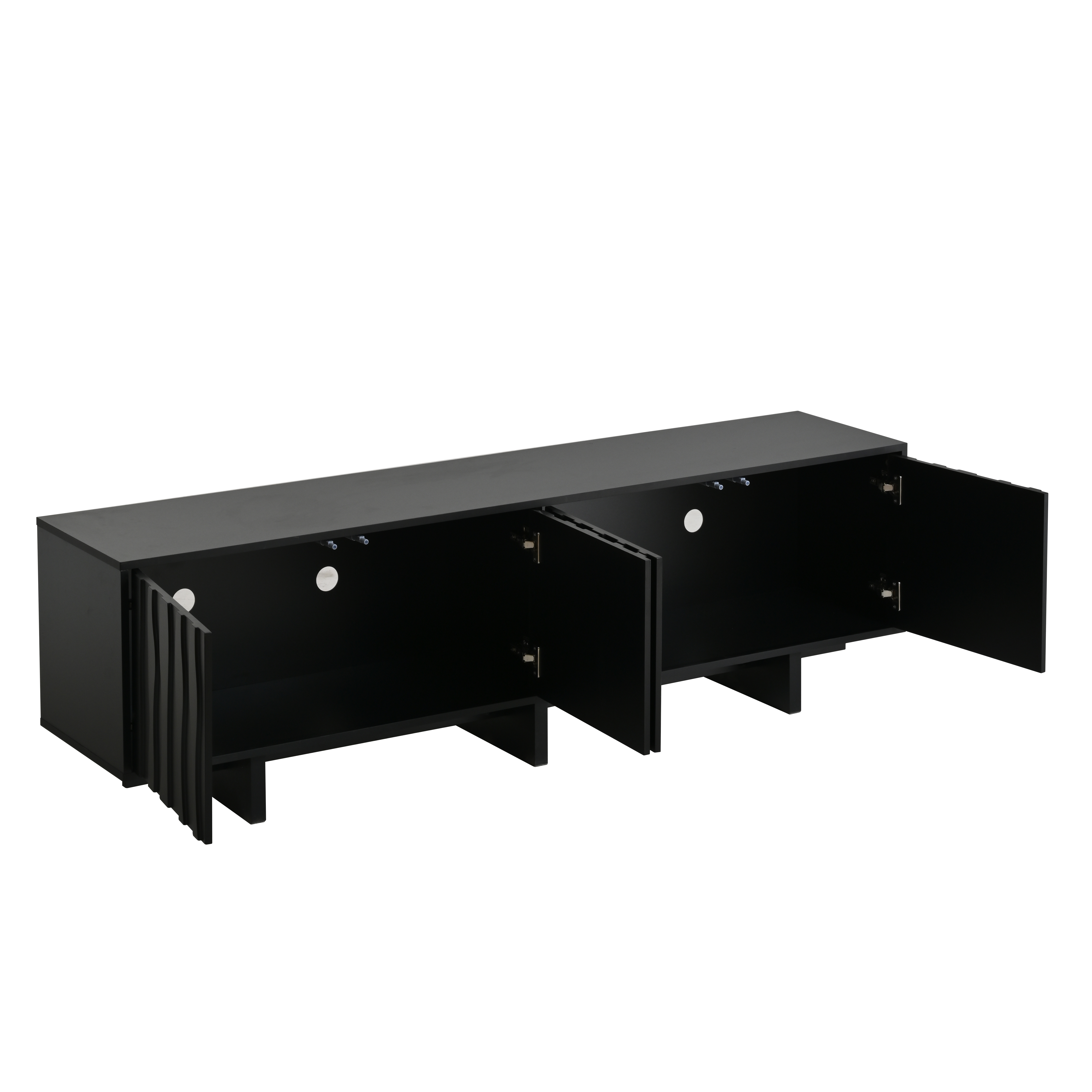 This TV stand features two spacious cabinets that offer generous enclosed storage for organizing media devices, gaming accessories, books, and everyday essentials. The large compartments help keep your living area clean and clutter-free while maintaining a sleek, modern look.