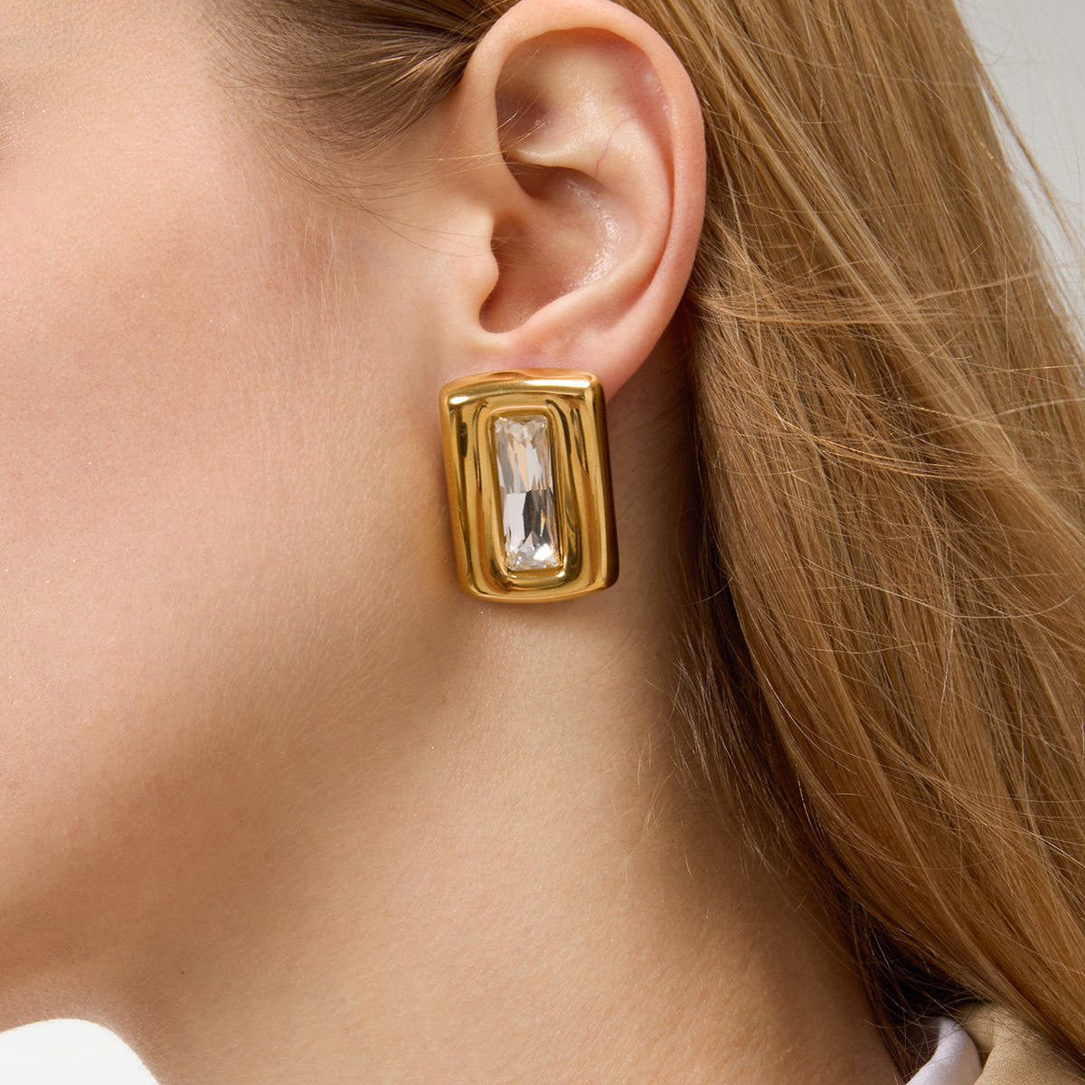 Retro-style Zircon-acrylic Square Earrings With A Light-luxury High-end Vibe