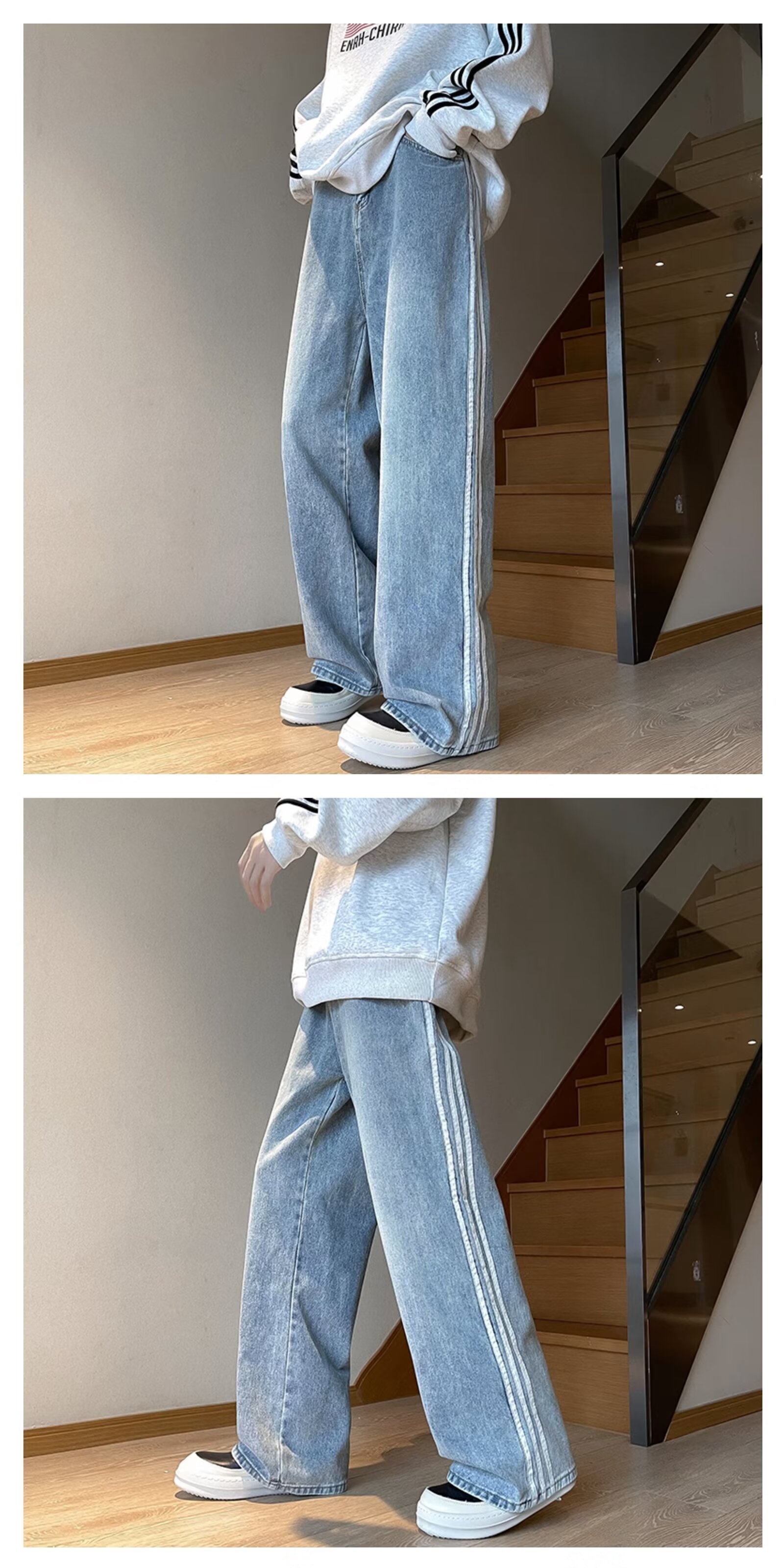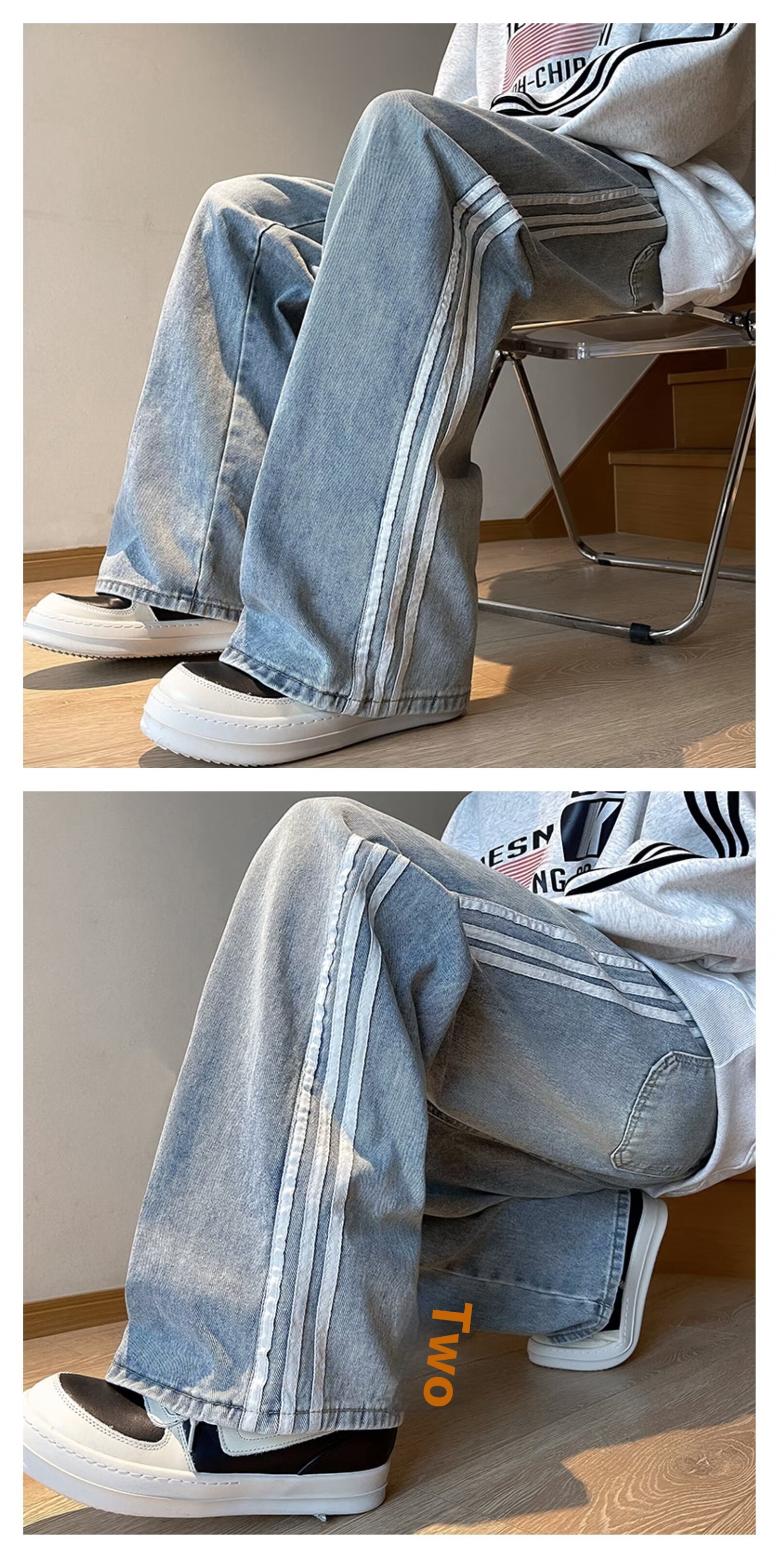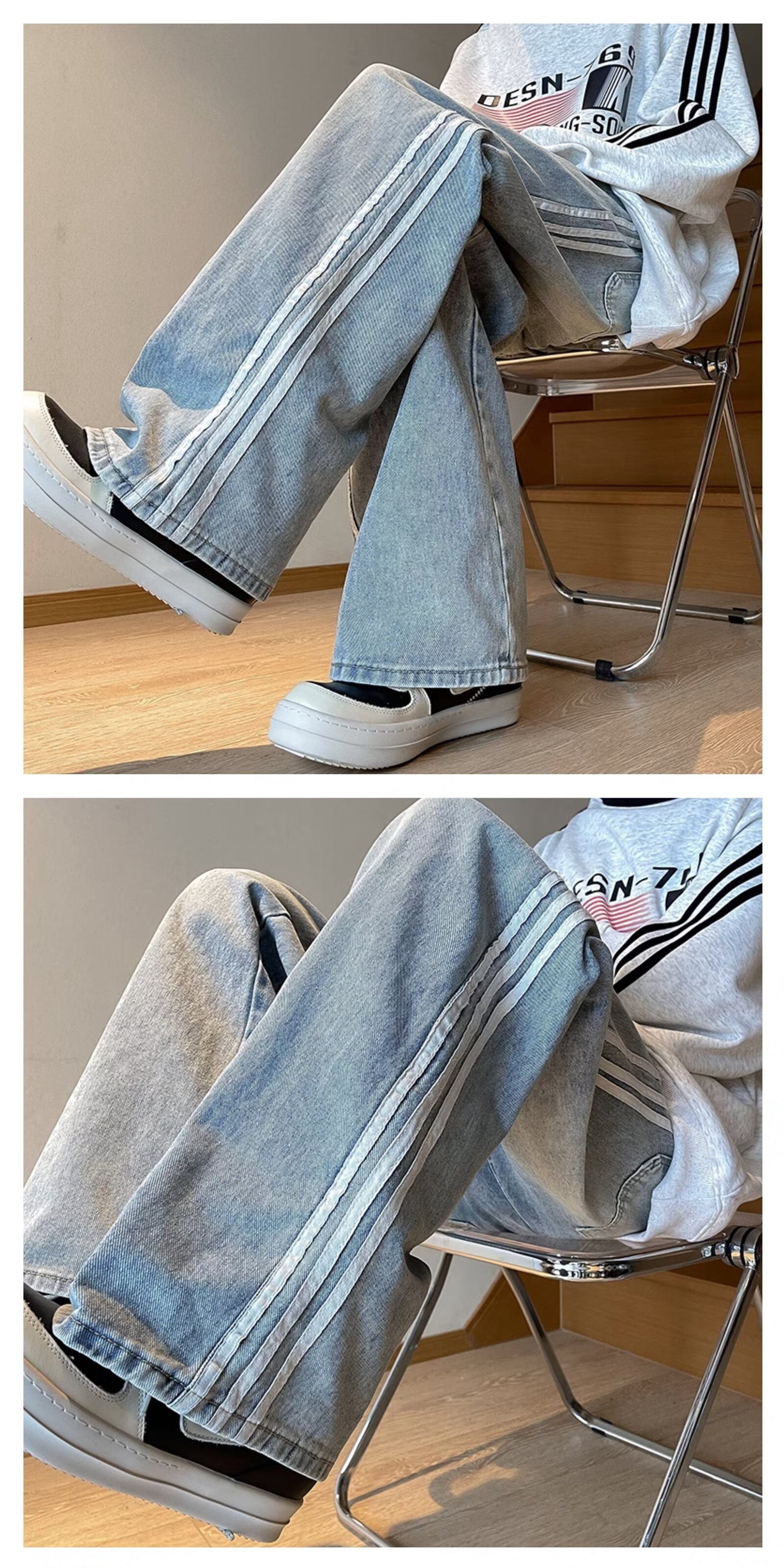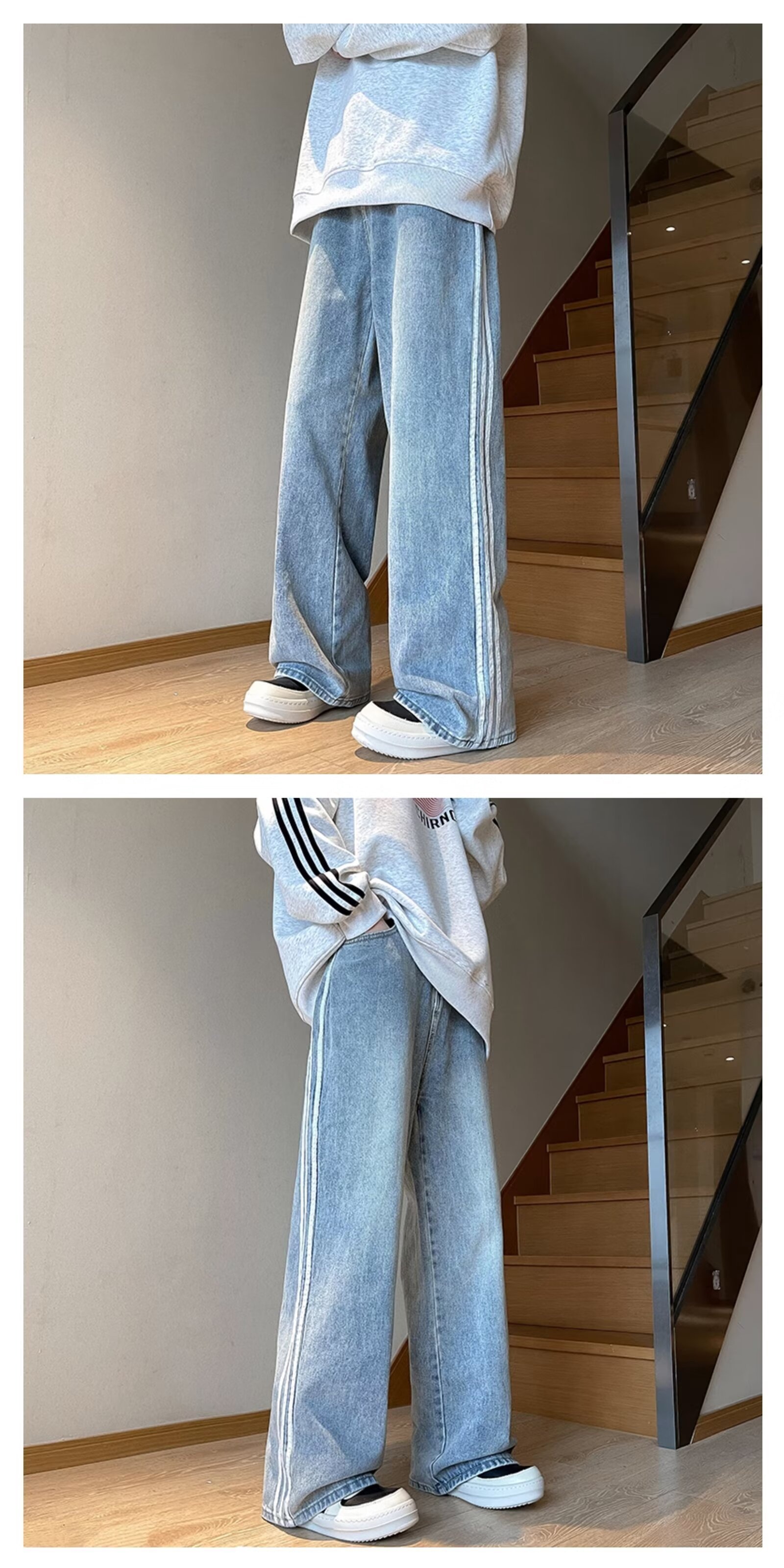 Retro Three-bar Straight Casual All-matching Wide Leg High Street Jeans For Men