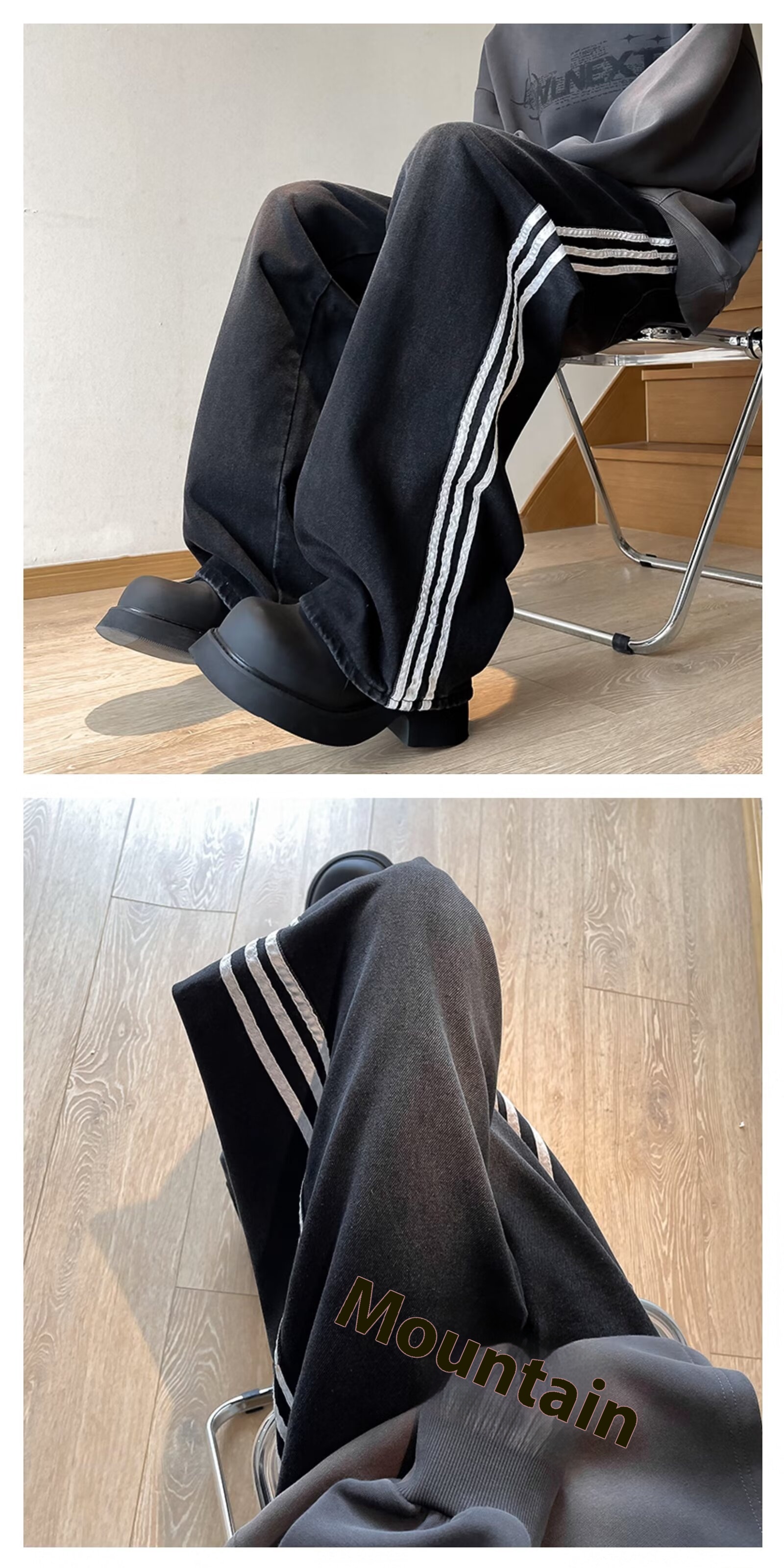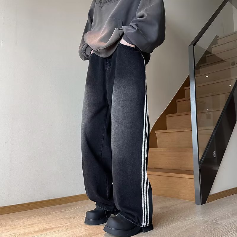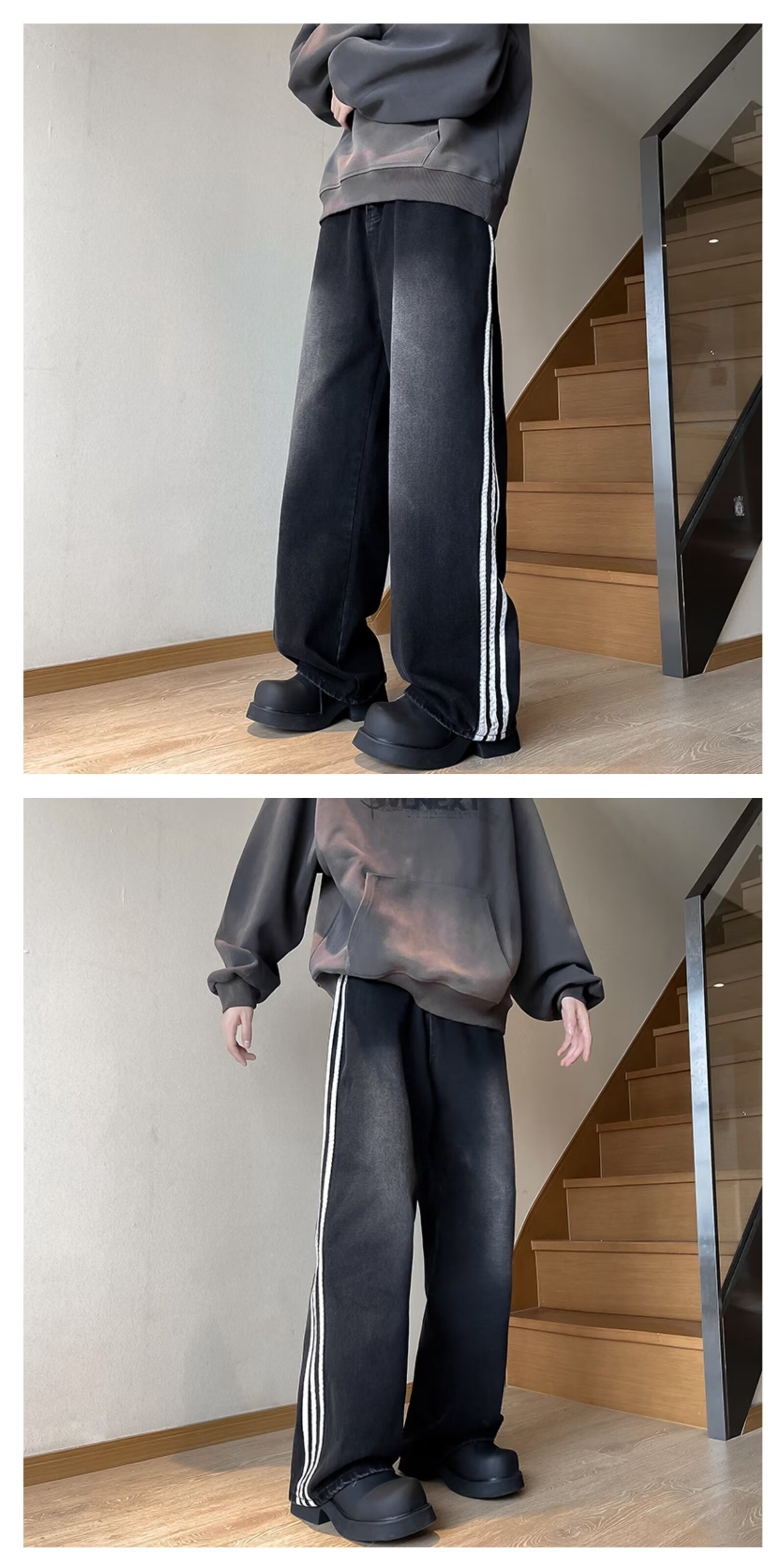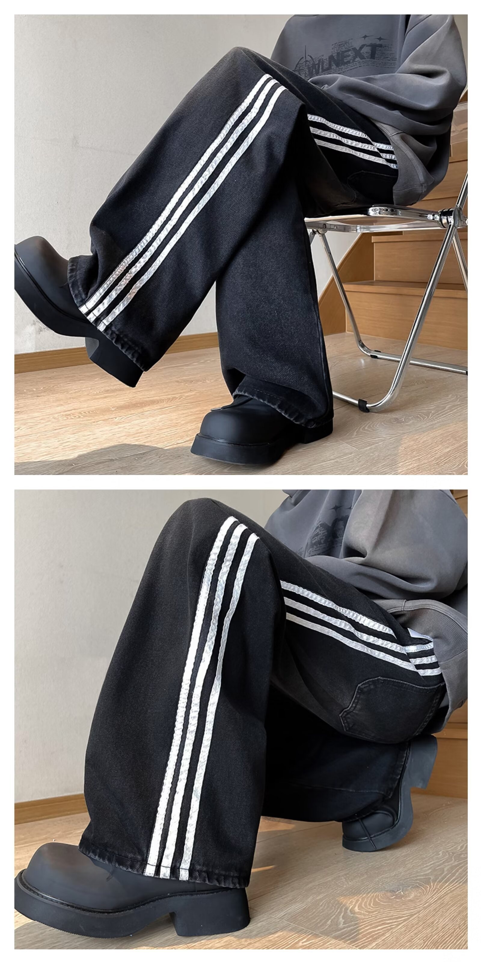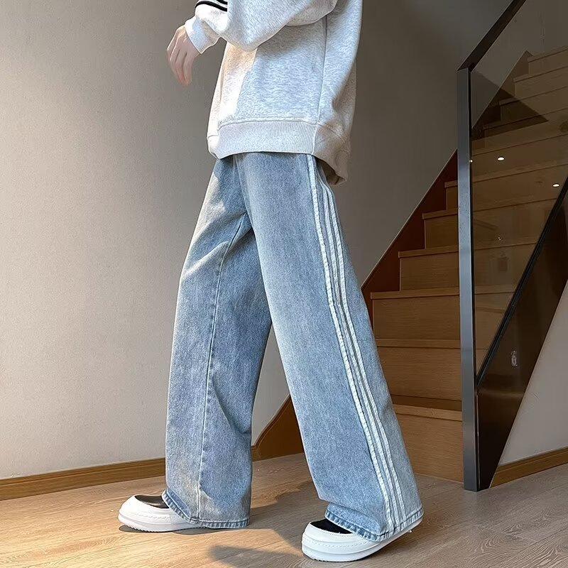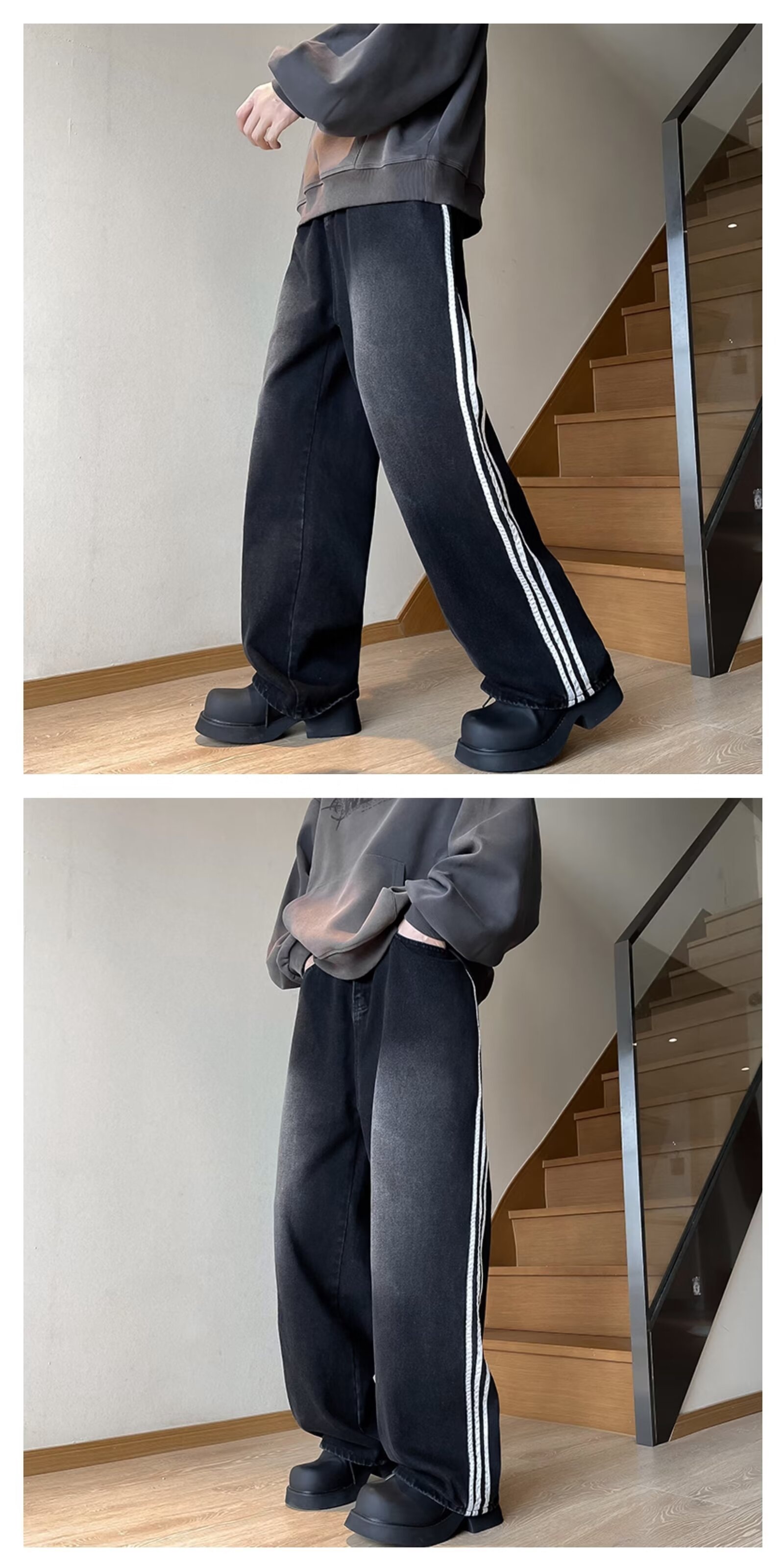 Retro Three-bar Straight Casual All-matching Wide Leg High Street Jeans For Men