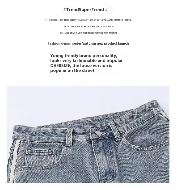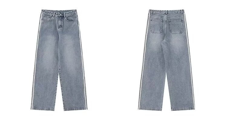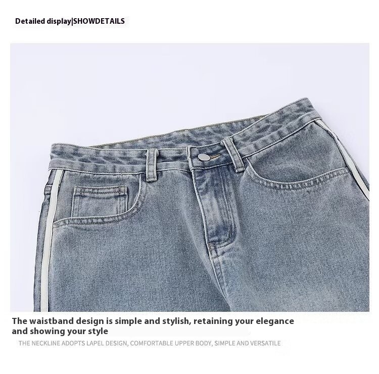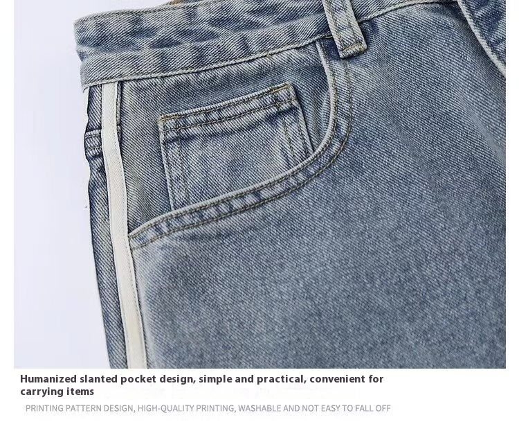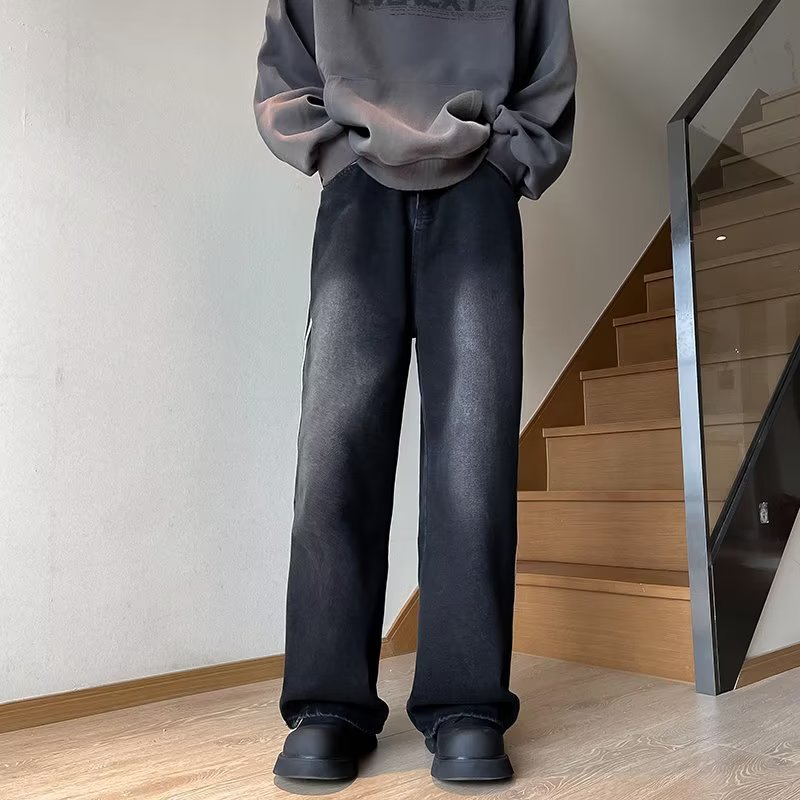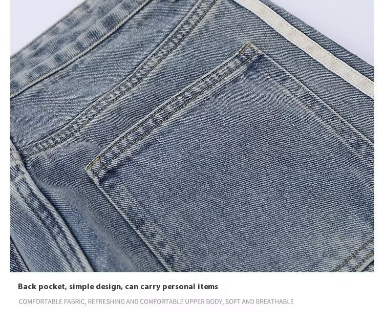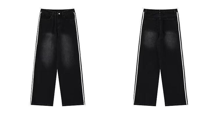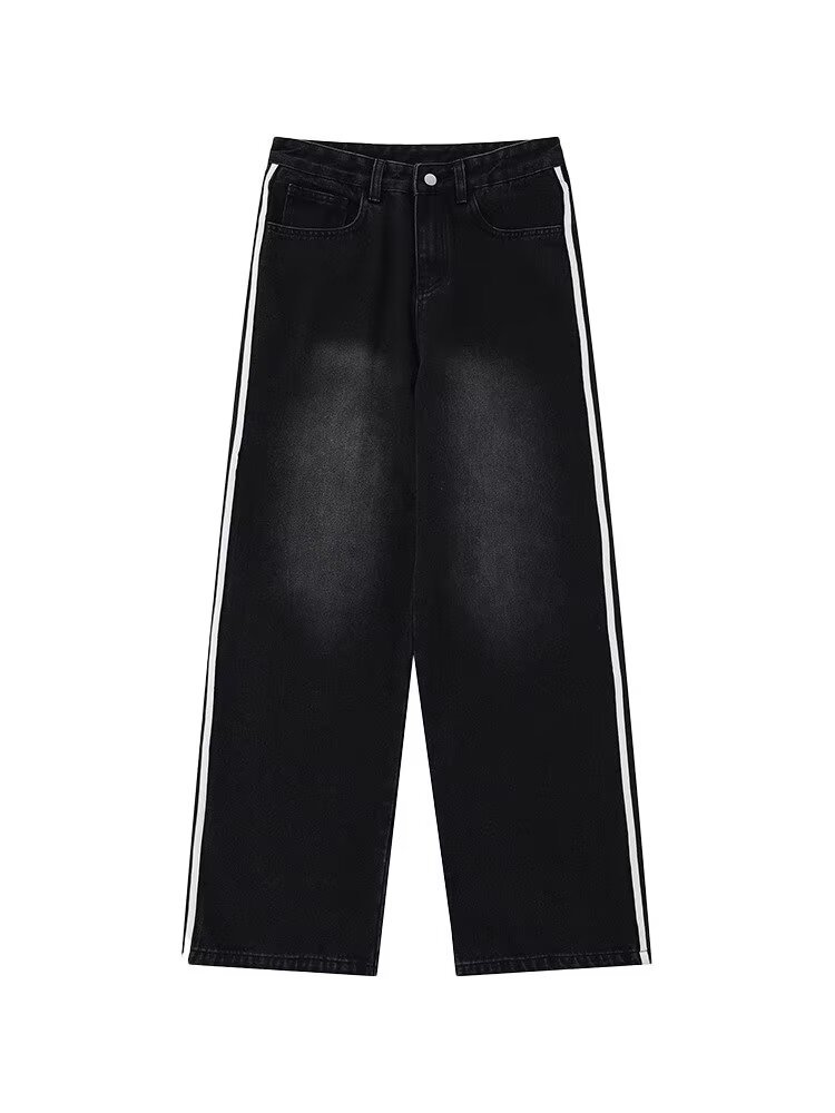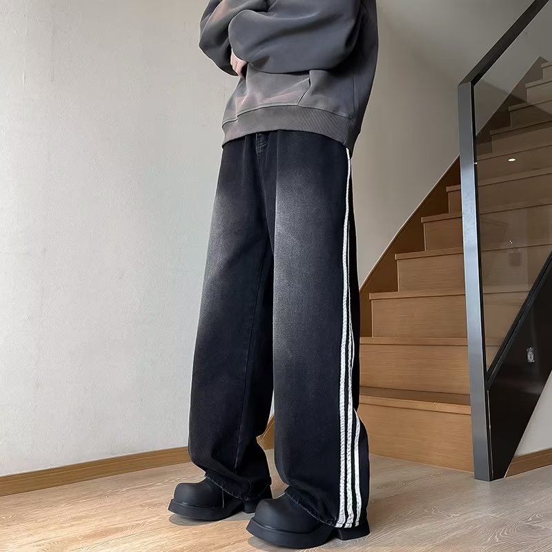 Retro Three-bar Straight Casual All-matching Wide Leg High Street Jeans For Men
