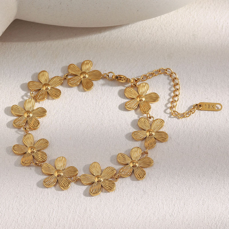 Product information:Color: Daisy bracelet Style: Women's Material: titanium steel Purity: 18K Shape: Flower Style: Retro