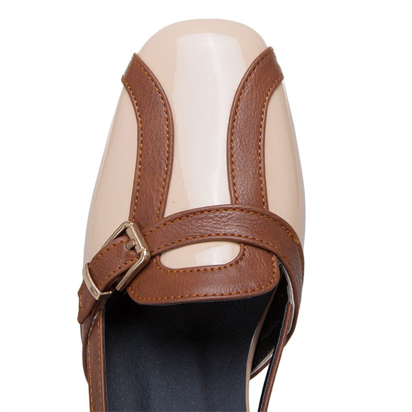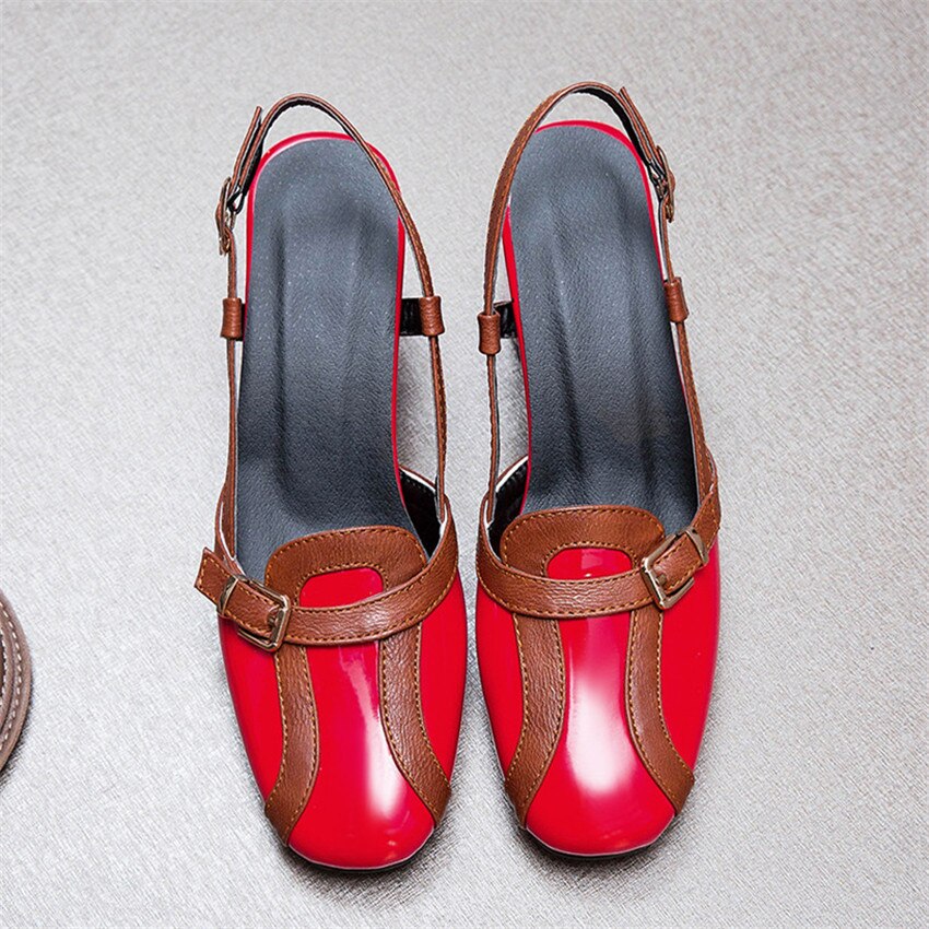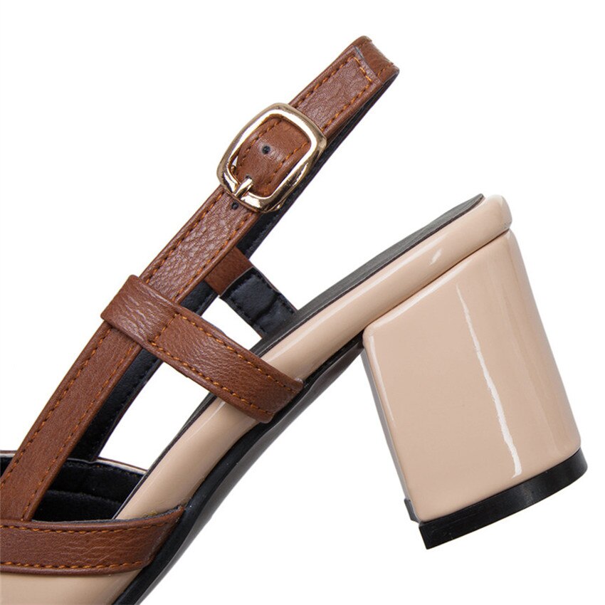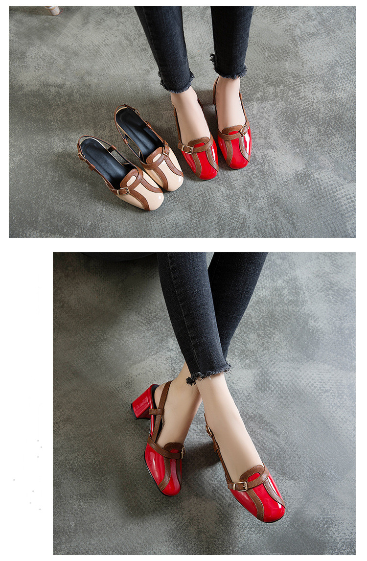 Product Category: Fashion Sandals Applicable age: adult Upper Material: Artificial PU Style: Roman style Toe shape: square head Popular elements: thick heel, color matching Color: red, apricot