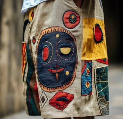 Retro Tribal Mask Geometric Art Men's Casual Shorts
