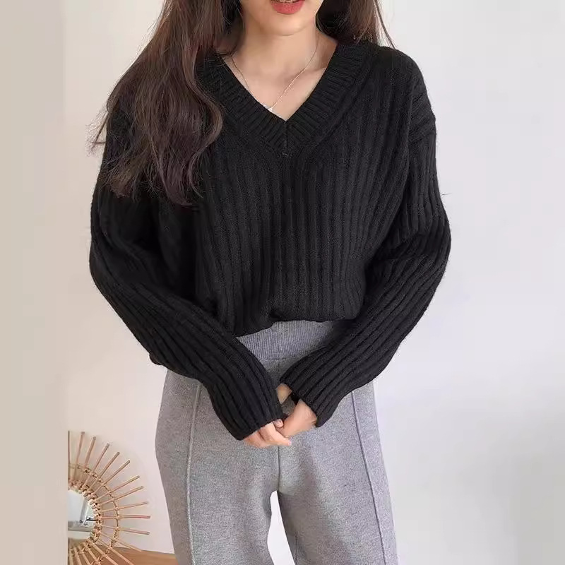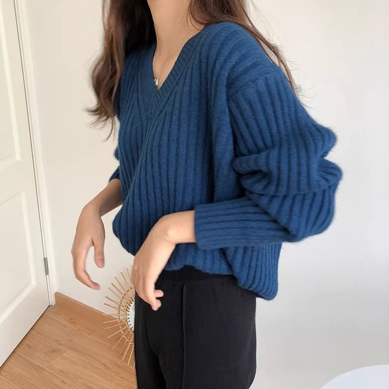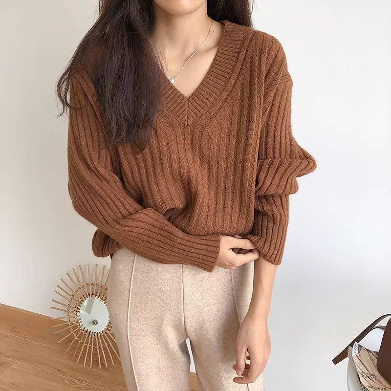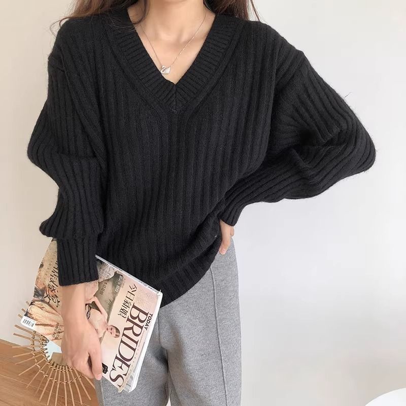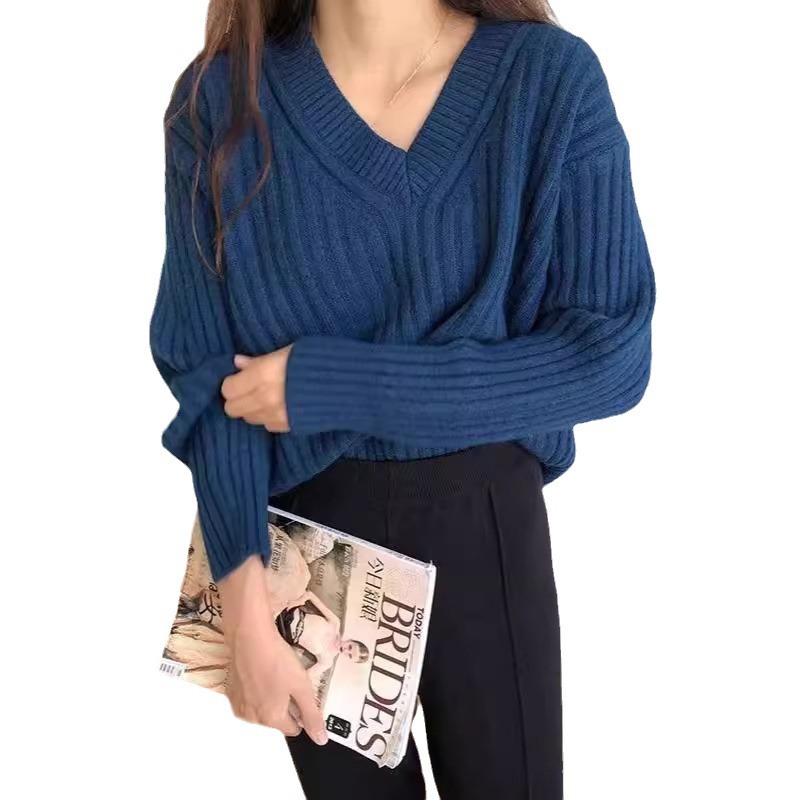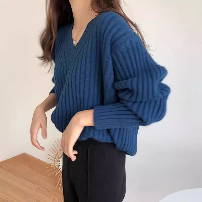 Retro V-neck Pullover Women's Loose Sweater