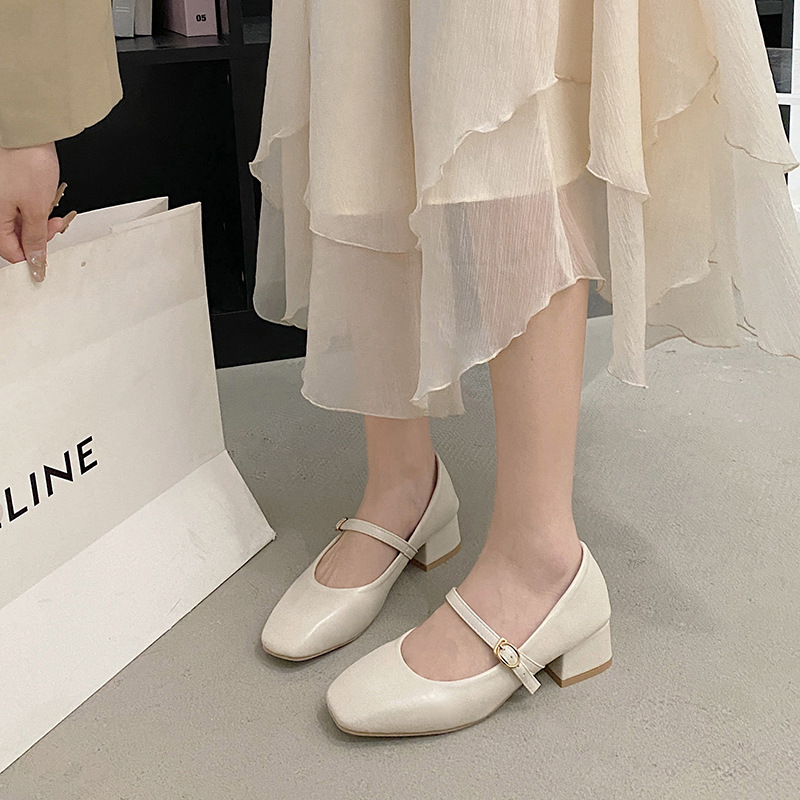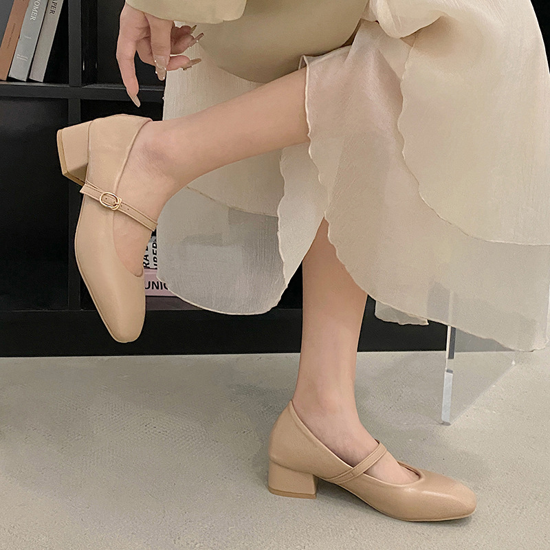 Retro Versatile Square Toe Shallow Cut Single Shoe