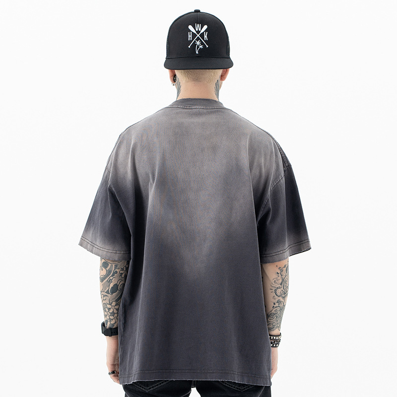 Retro Wash Tie-dye Gradient Oversize Casual Short-sleeved T-shirt