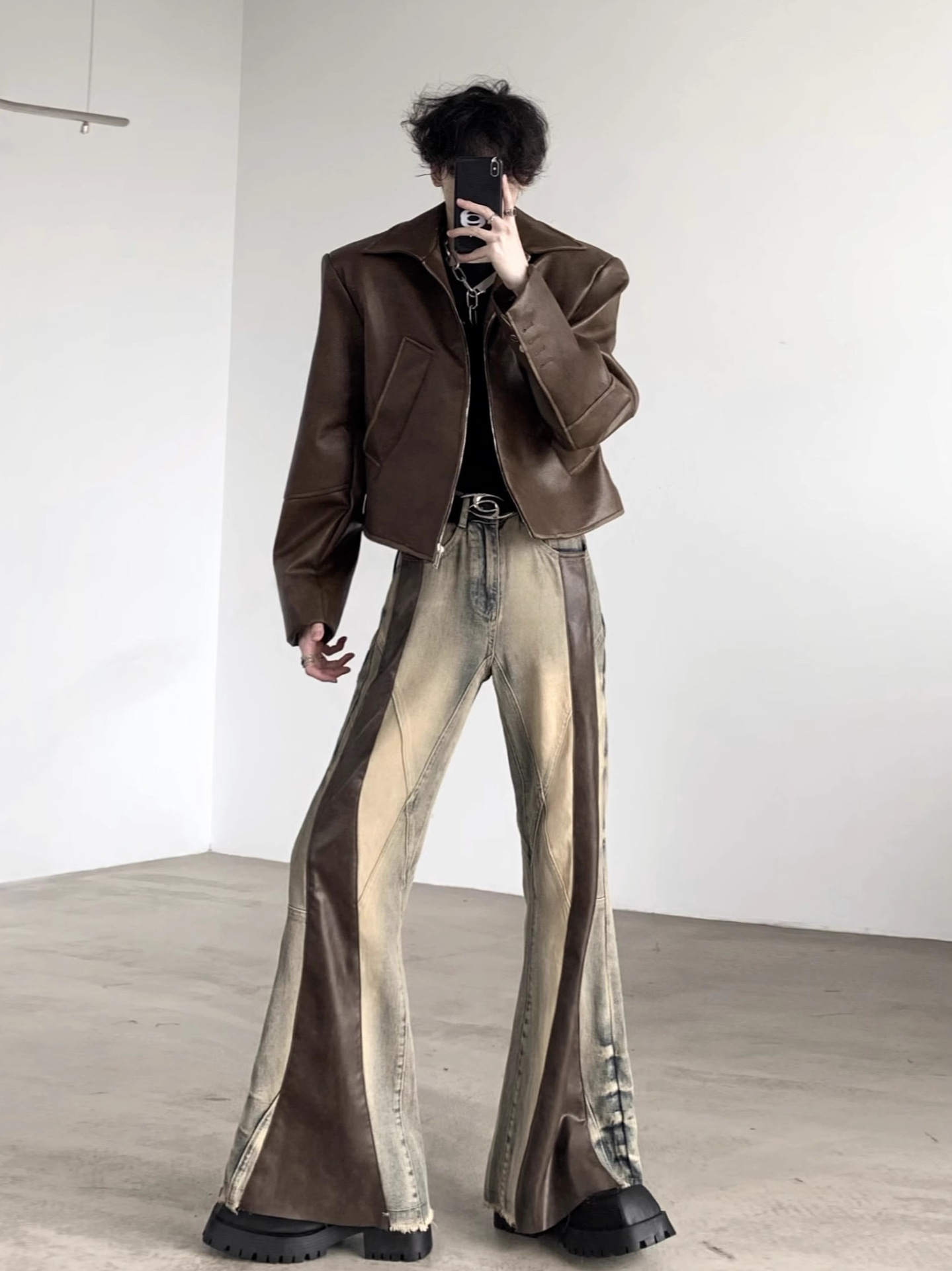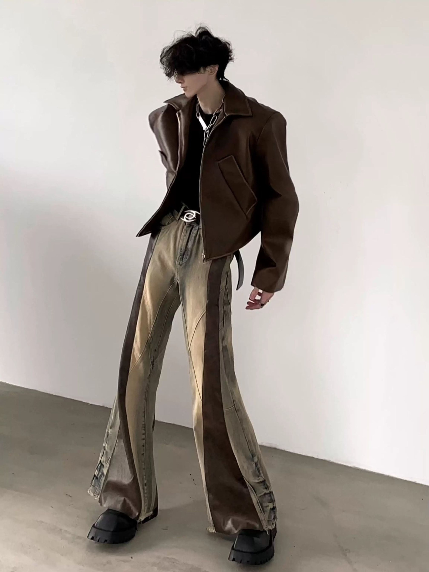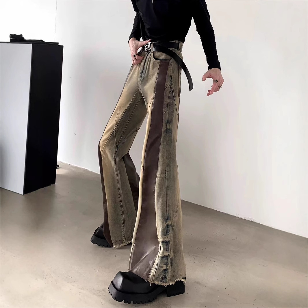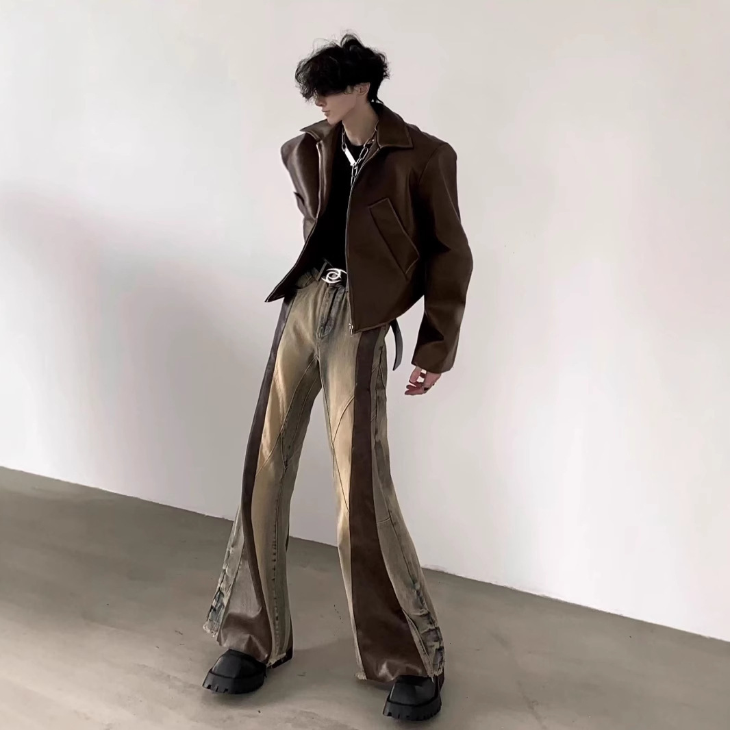 Retro Washed Distressed Loose Straight-Leg Wide-Leg Pants For Men