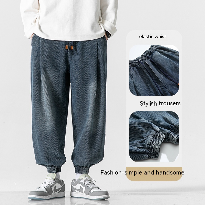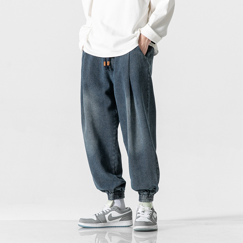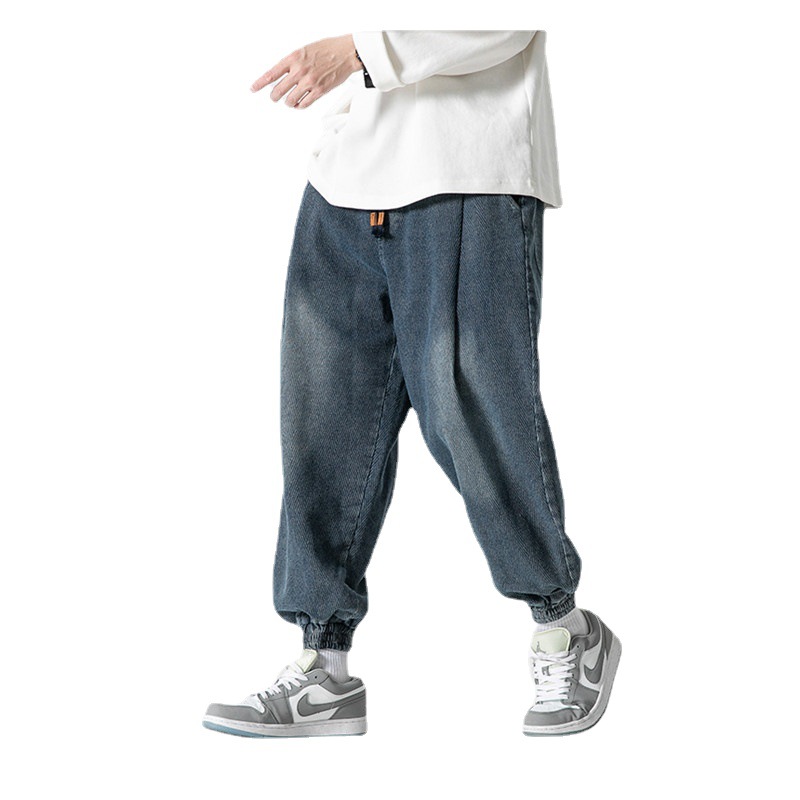 Retro Washed Jeans Men's Loose Exercise Ankle-tied