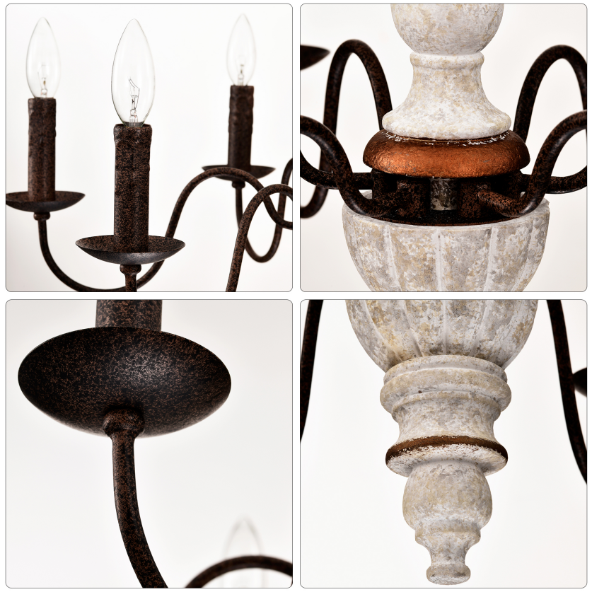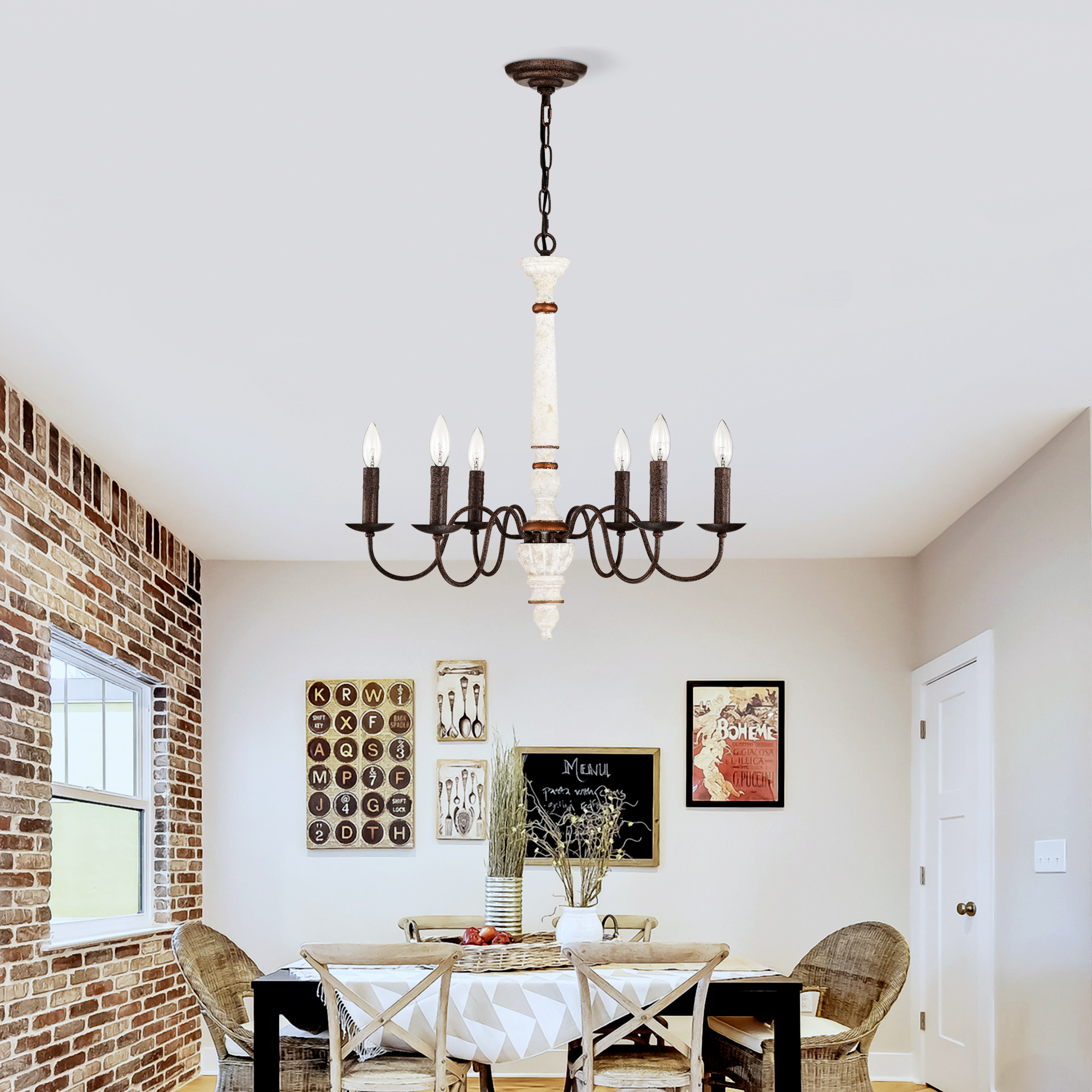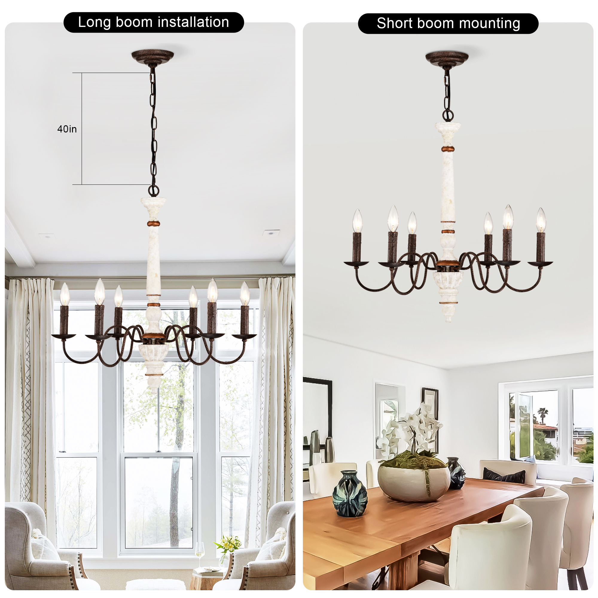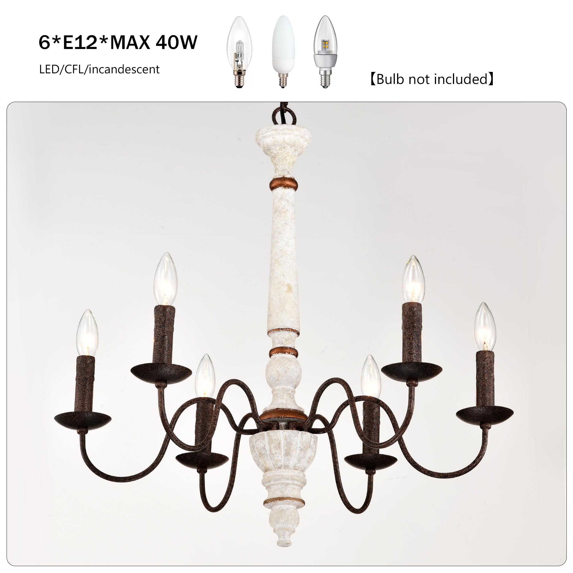 Product Name:Retro white and Rust Color Chandelier With Light Fixture 6 Light (E12 NO include Bulb) Pendant Light Fixtures for Dining Room, Lobby, Kitchen, Bedroom, Living Room, Conference Room, Home Office