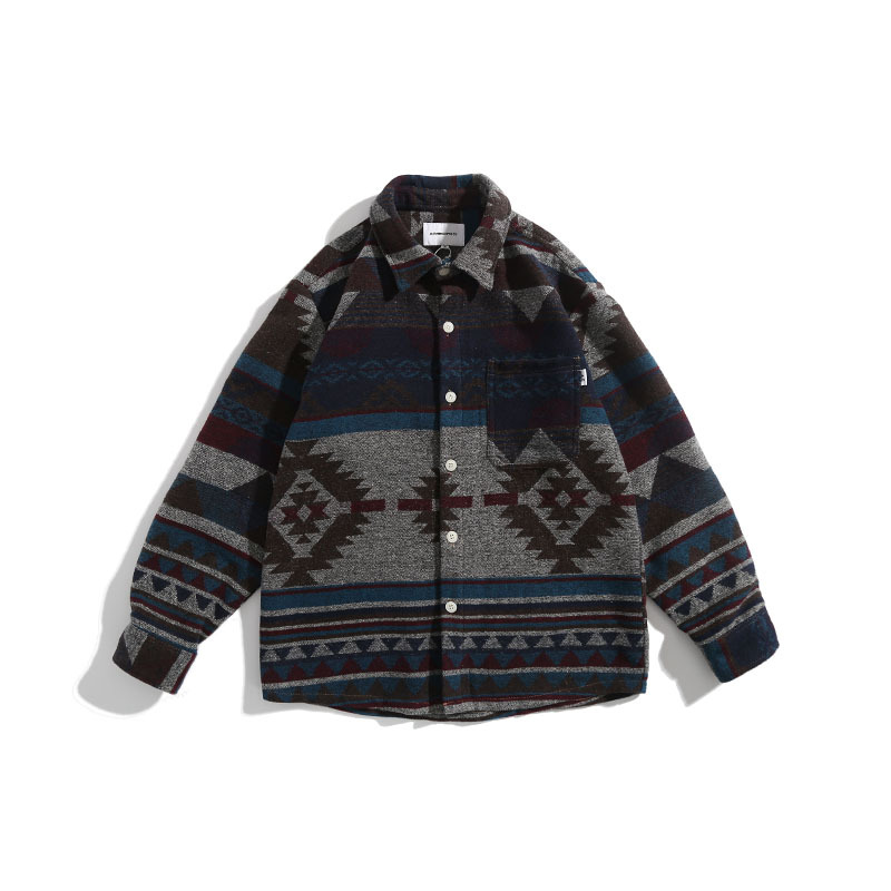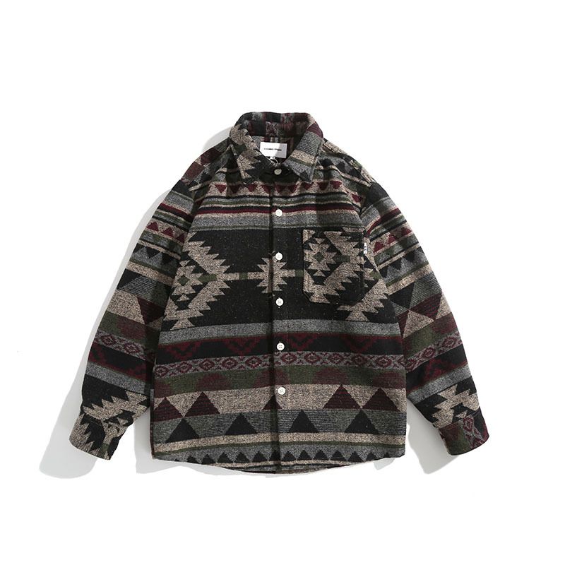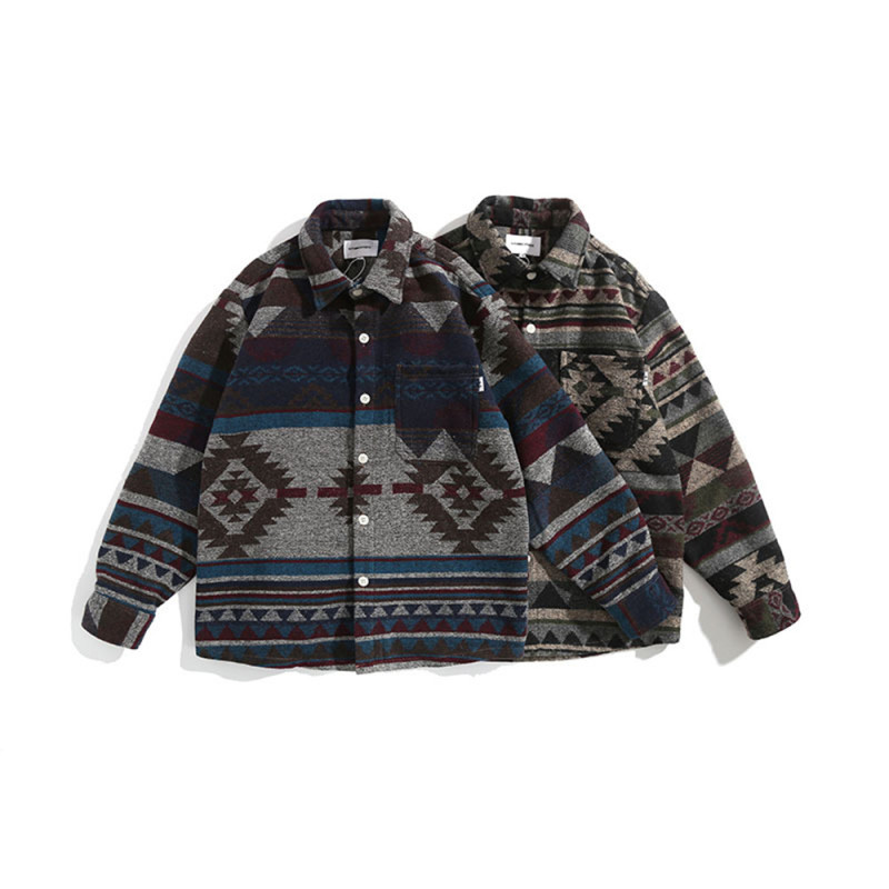 Retro Woolen Ethnic Long-sleeved Shirt Loose Coat
