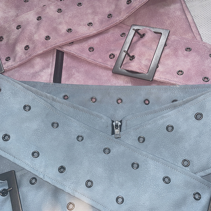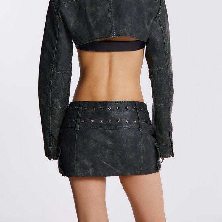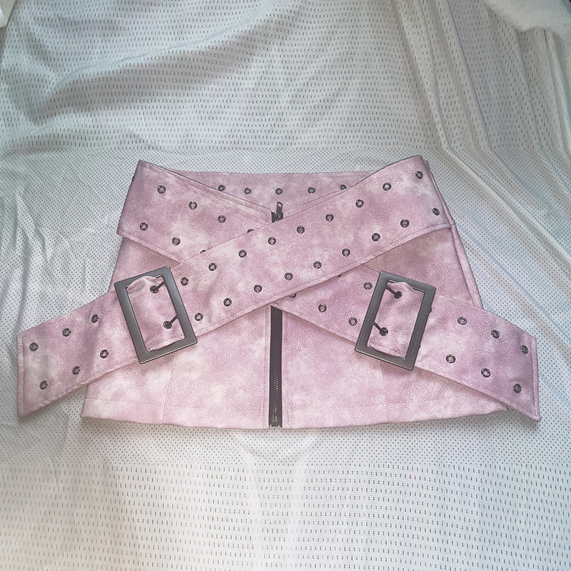 Retro Worn Cross Mechanical Style Belt Leather Low Waist Miniskirt