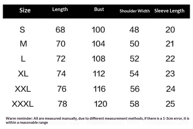 1. Asian sizes are 1 to 2 sizes smaller than European and American people. Choose the larger size if your size between two sizes. Please allow 2-3cm differences due to manual measurement. 2. Please check the size chart carefully before you buy the item, if you don't know how to choose size, please contact our customer service. 3.As you know, the different computers display colors differently, the color of the actual item may vary slightly from the following images.