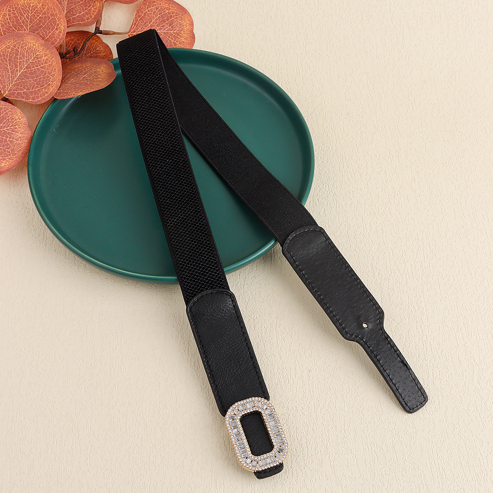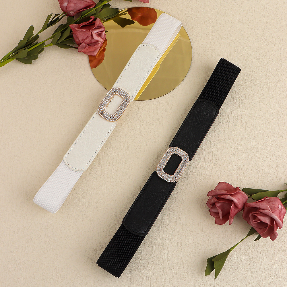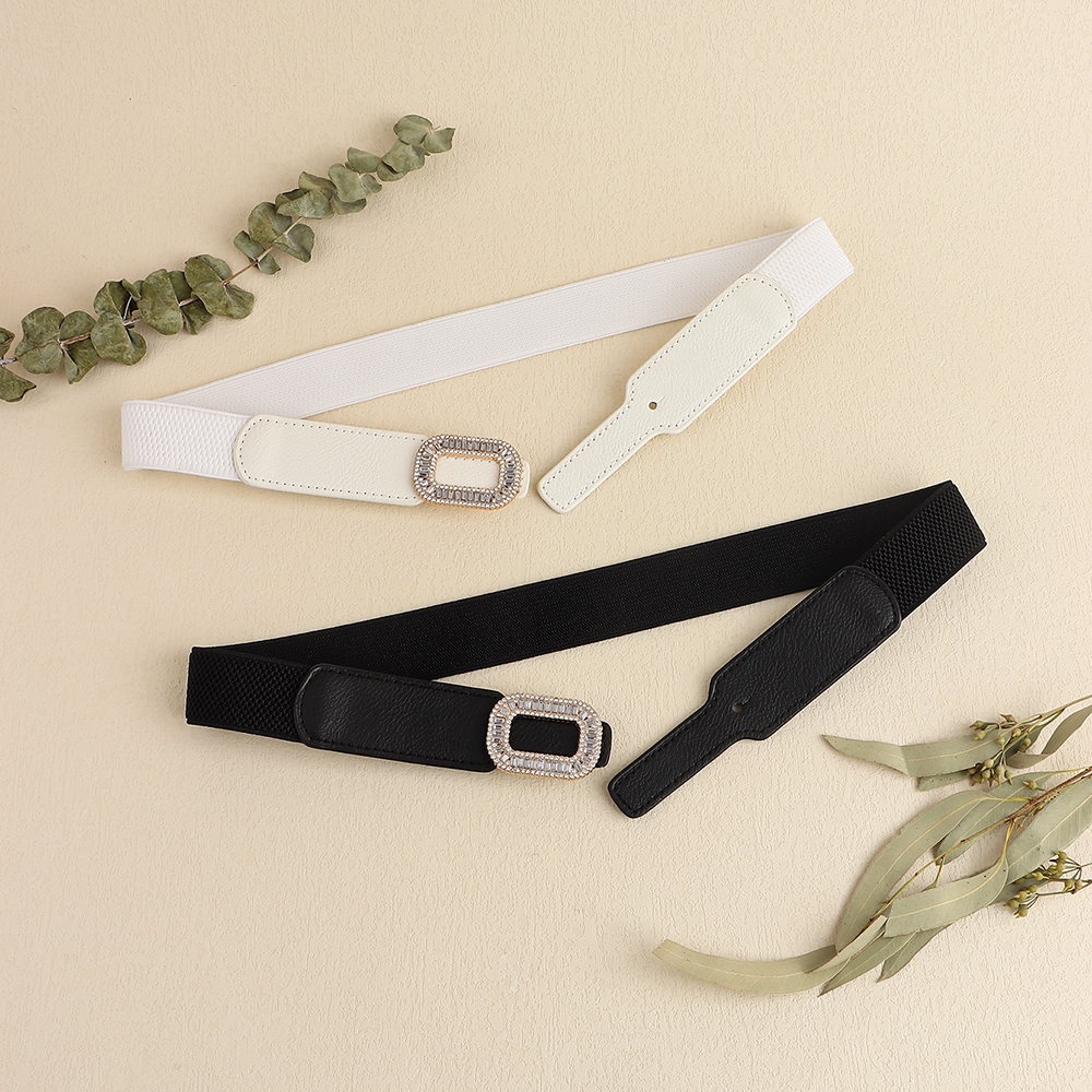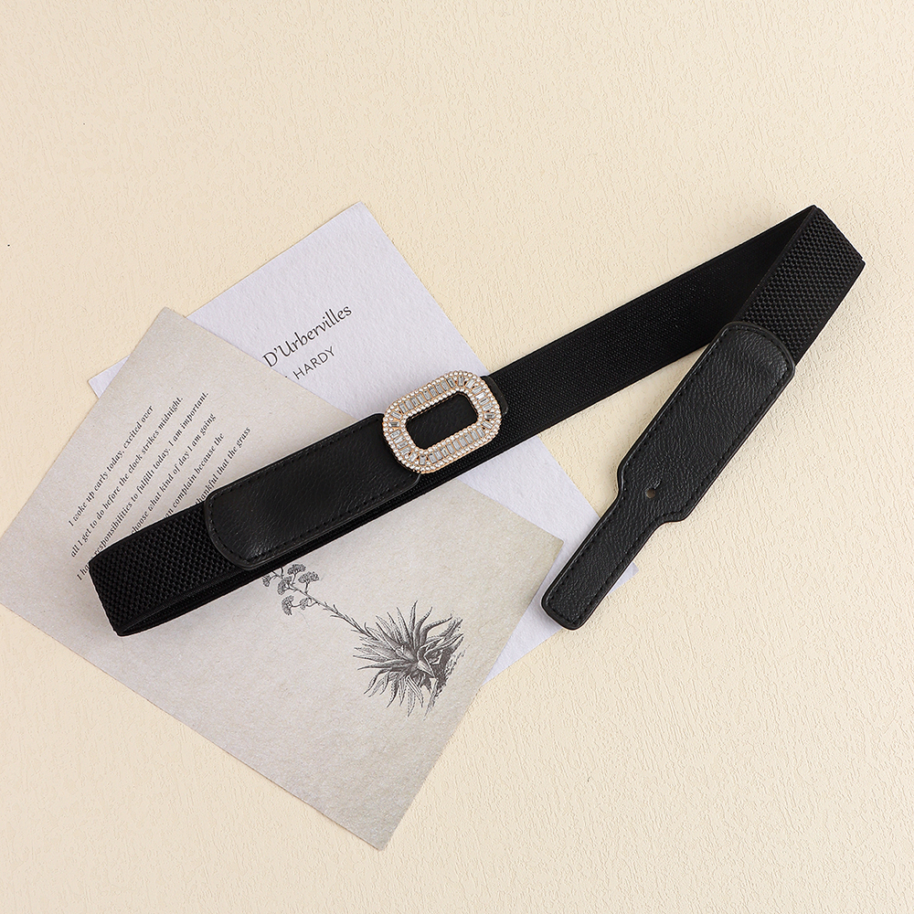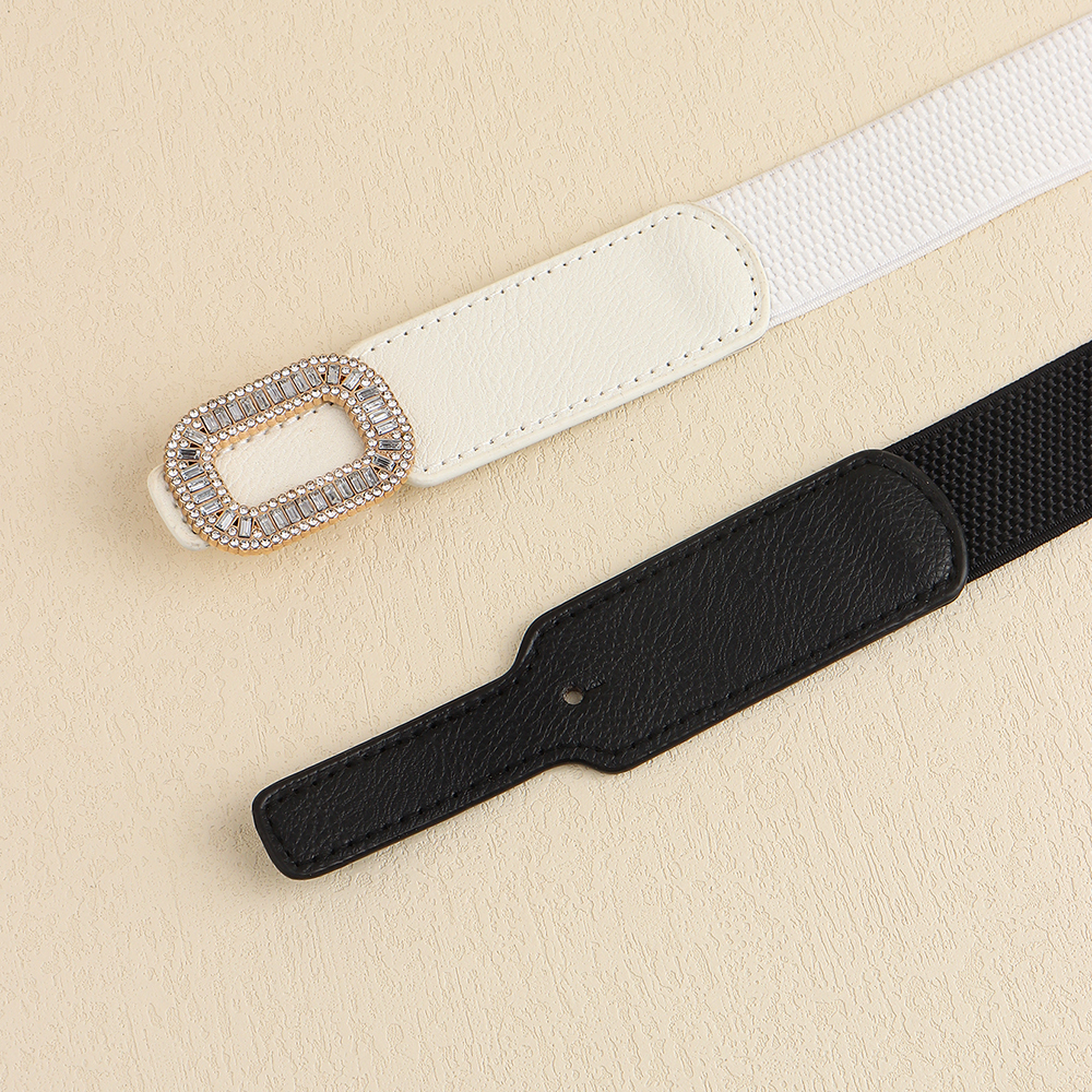 Rhinestone Inlaid Belt Women's Black White All-in-one Elastic Simple Elastic Belt Cinched Waist Suit Coat Waist Decoration