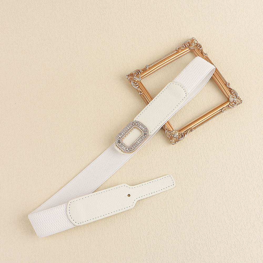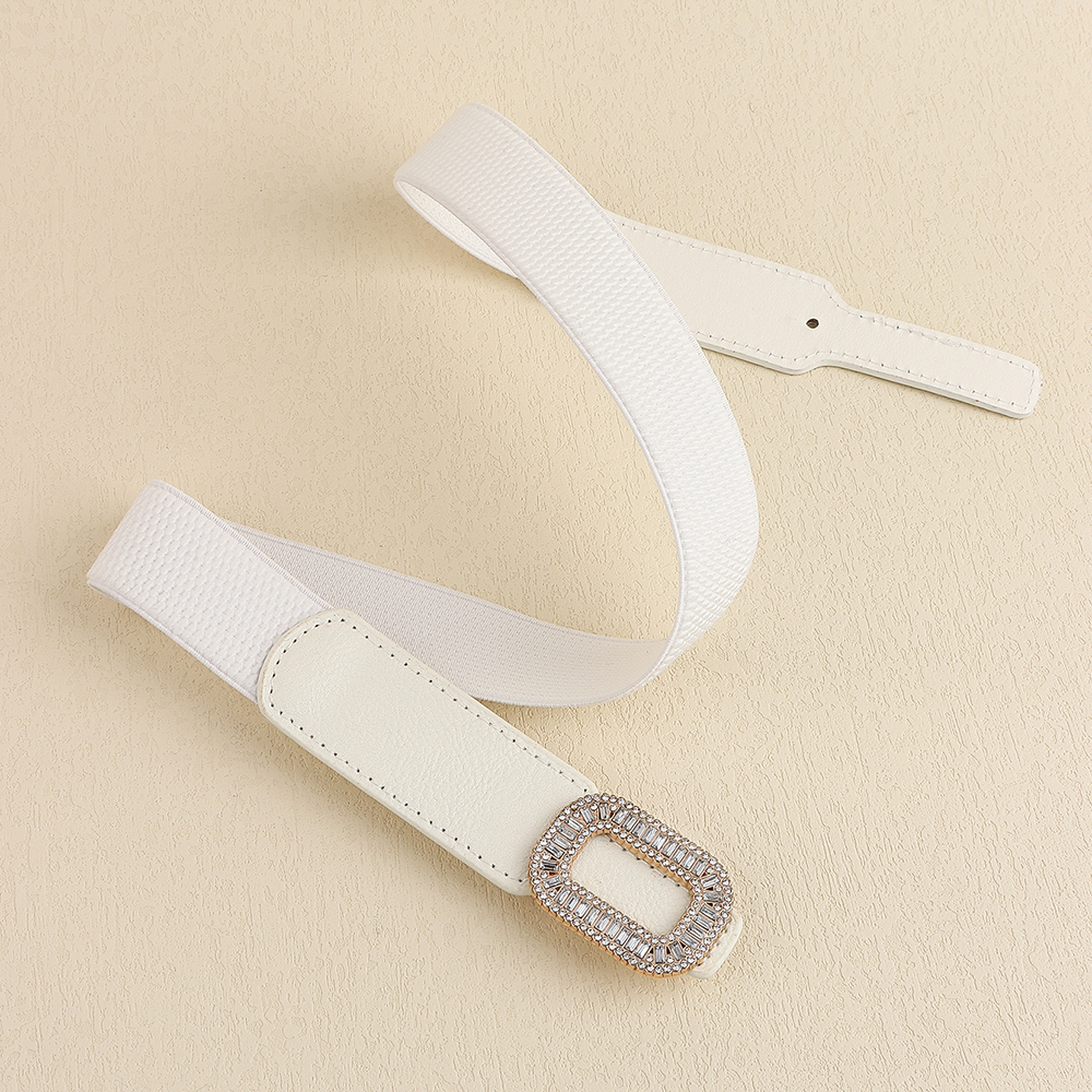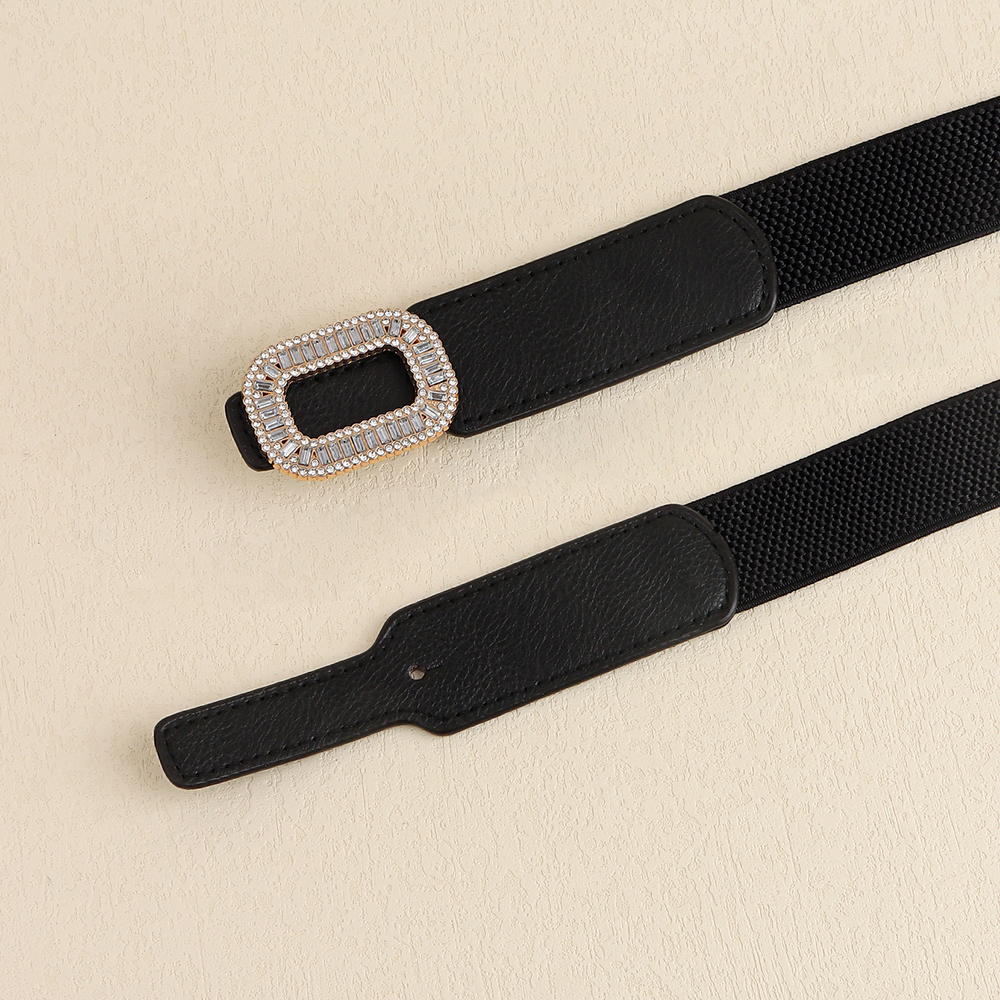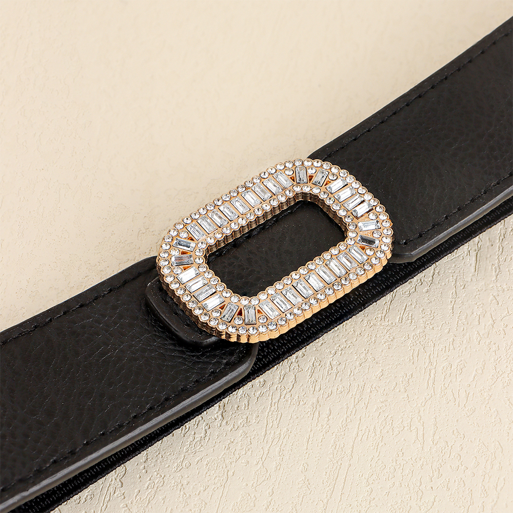 Rhinestone Inlaid Belt Women's Black White All-in-one Elastic Simple Elastic Belt Cinched Waist Suit Coat Waist Decoration