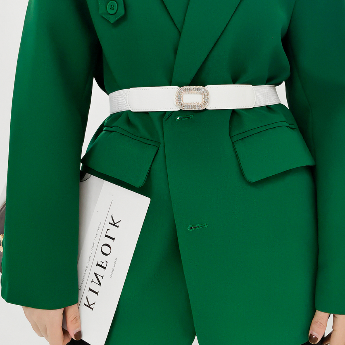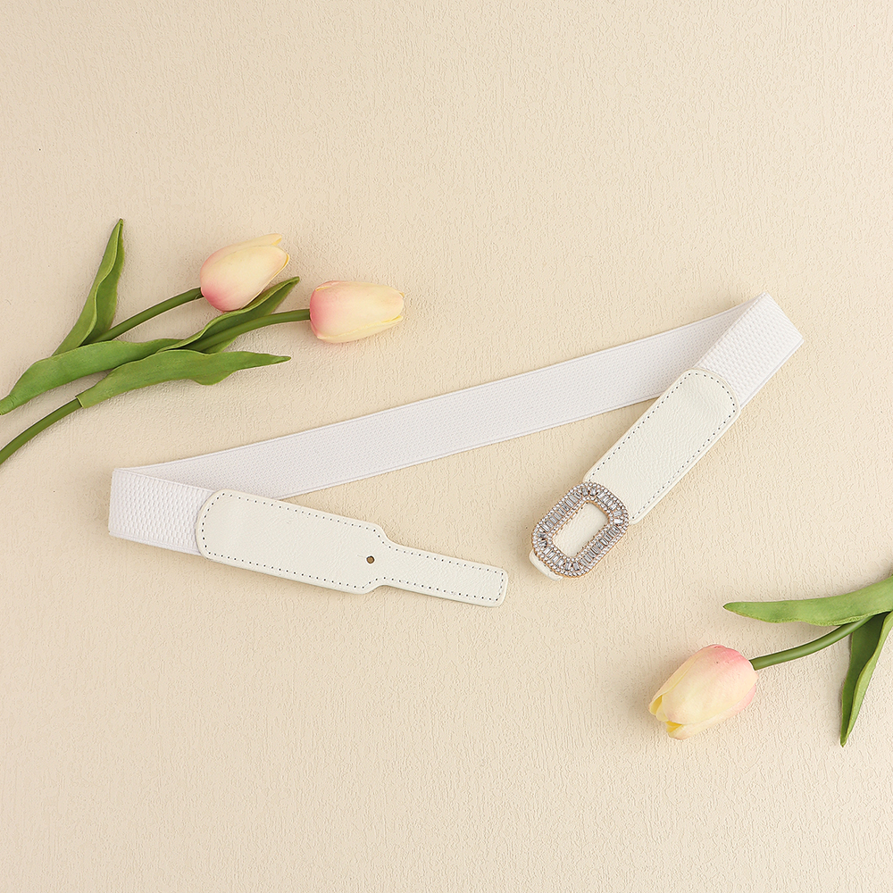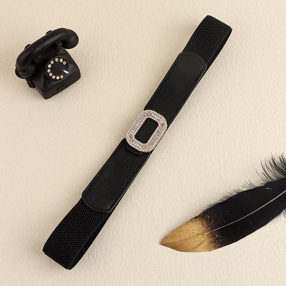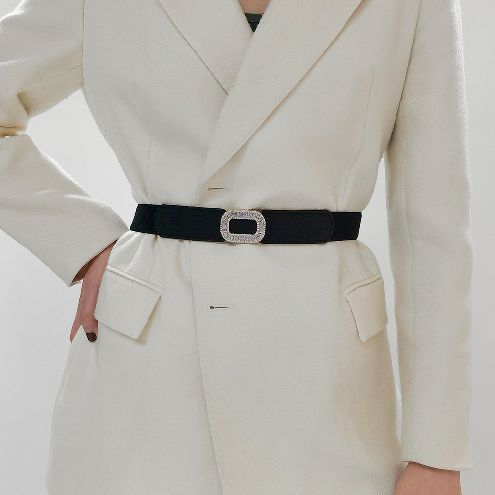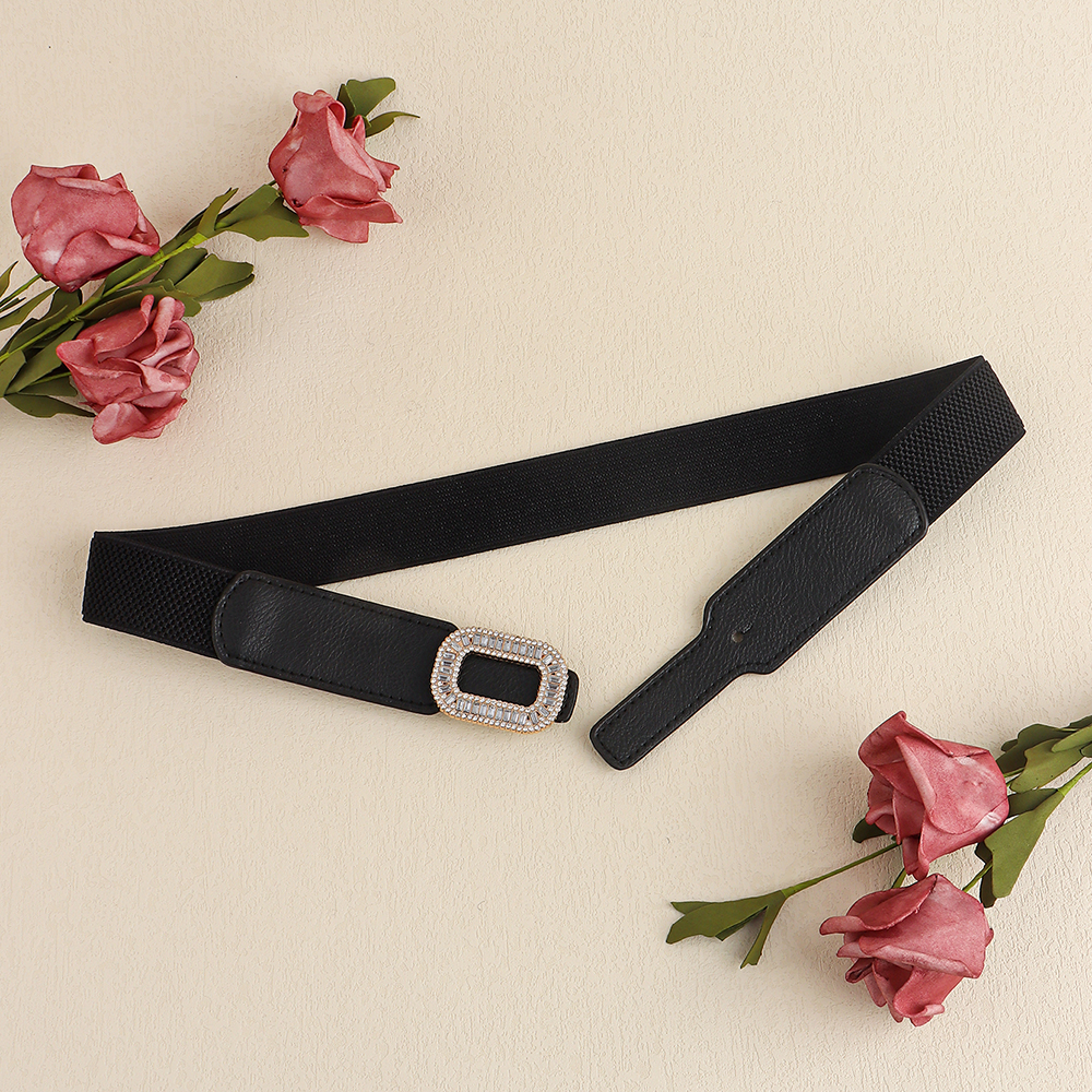 Rhinestone Inlaid Belt Women's Black White All-in-one Elastic Simple Elastic Belt Cinched Waist Suit Coat Waist Decoration