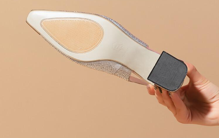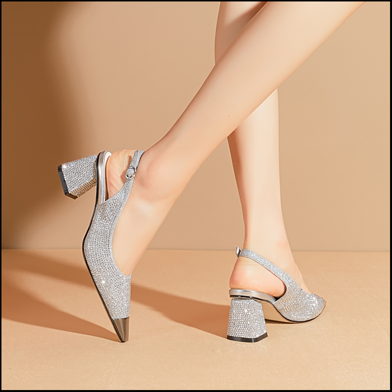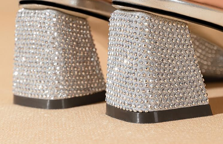 Popular elements: Rhinestones, thick heels
