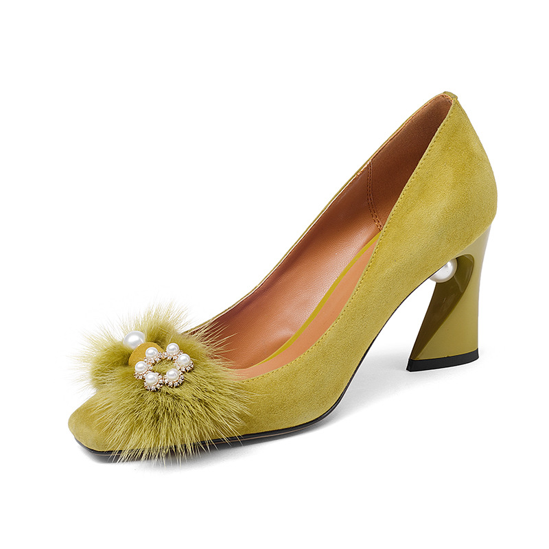 Popular elements: thick heel, rhinestones, metal, shallow mouth