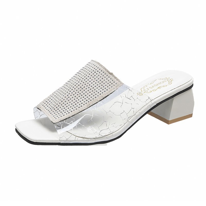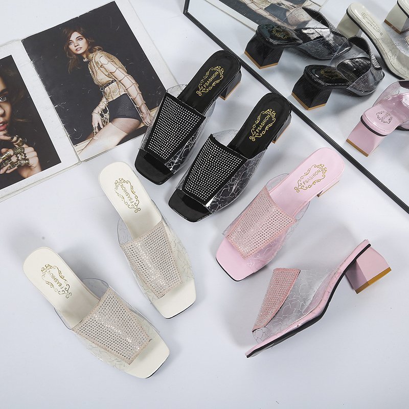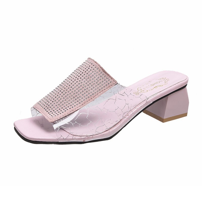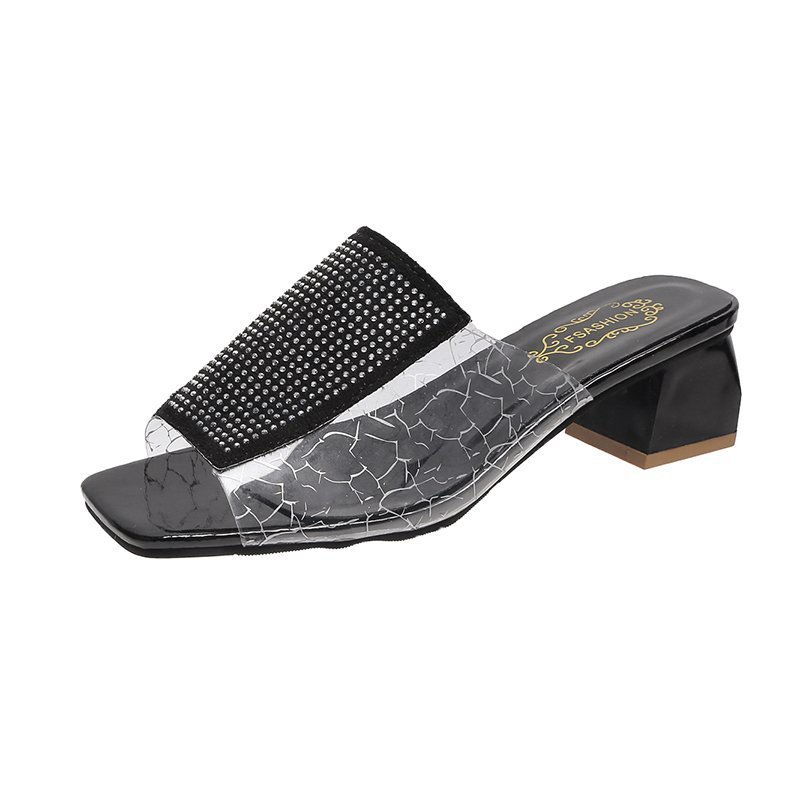Rhinestone Rubber Casual Fashion Flat Head Spot One-shaped High-heeled Slippers