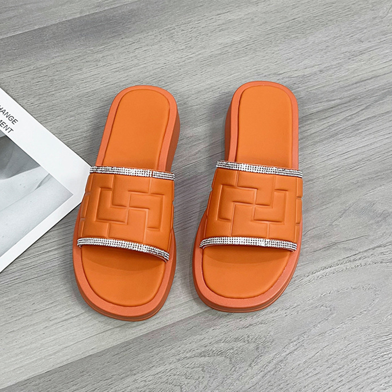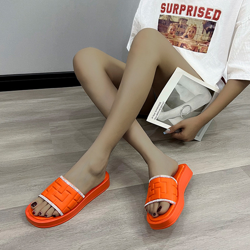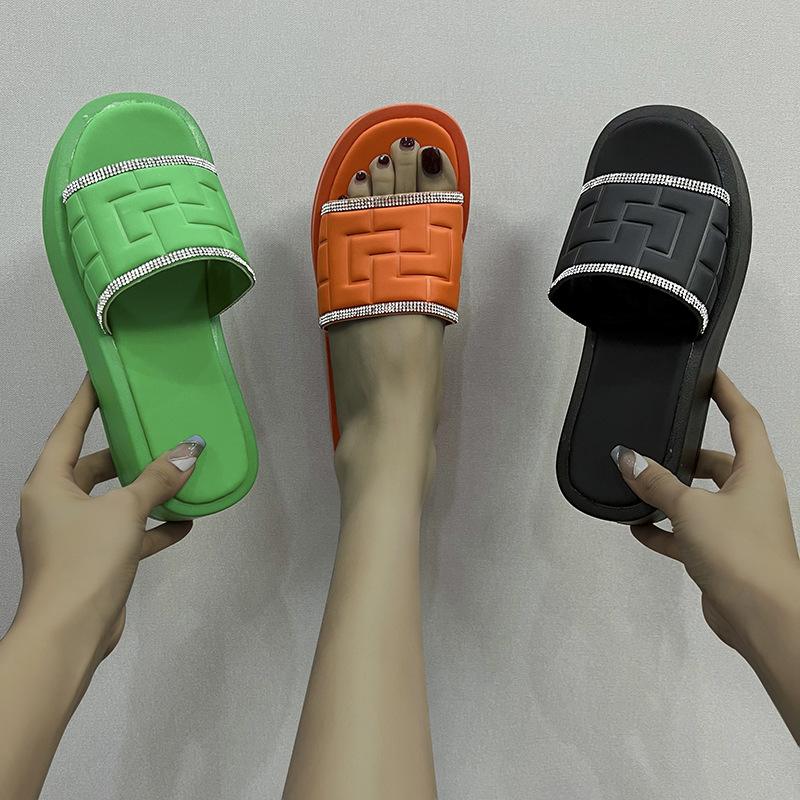 Rhinestones Slippers Women Summer Candy-color Flat Heel Shoes