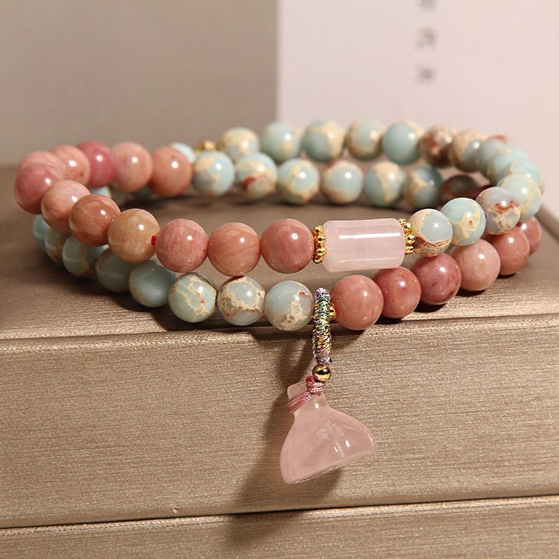 Color: rhodochrosite Shoushan stone multi-circle lotus seedpod bracelet