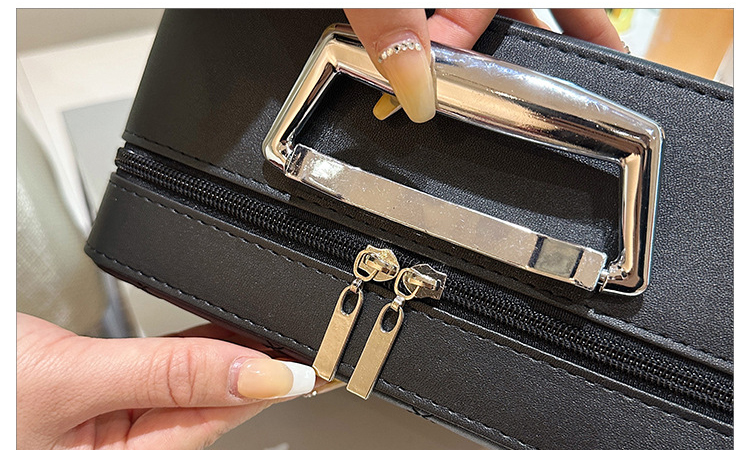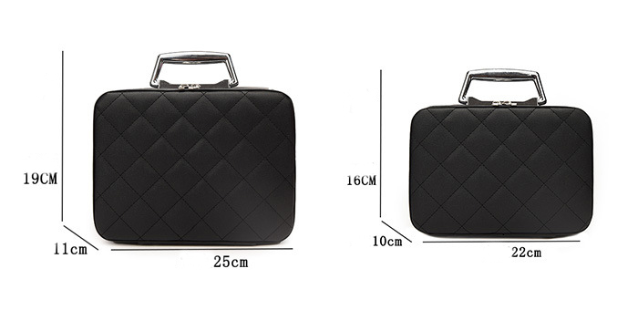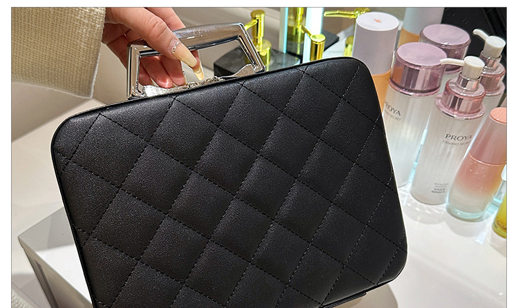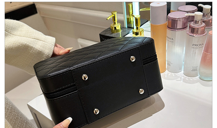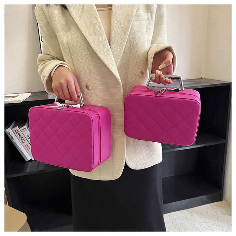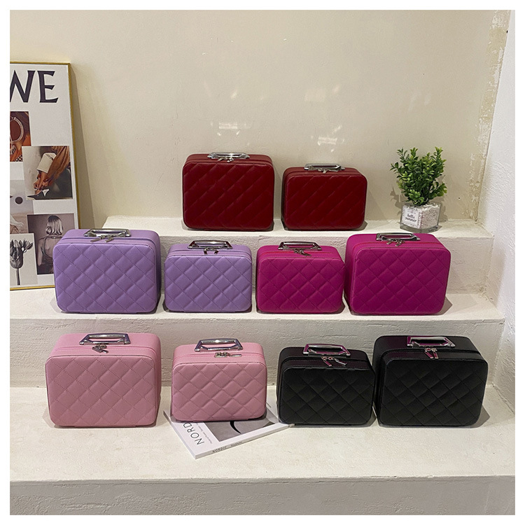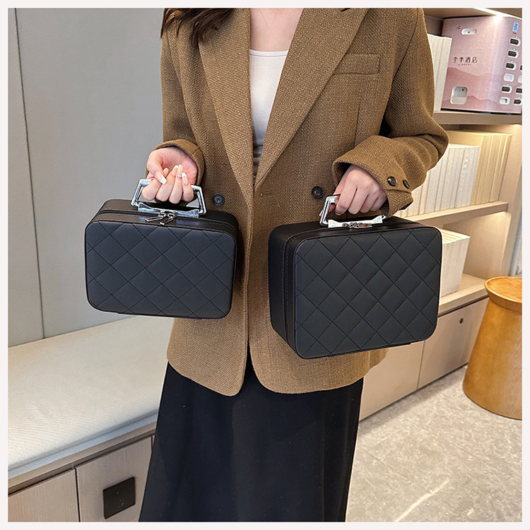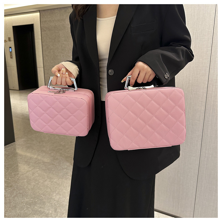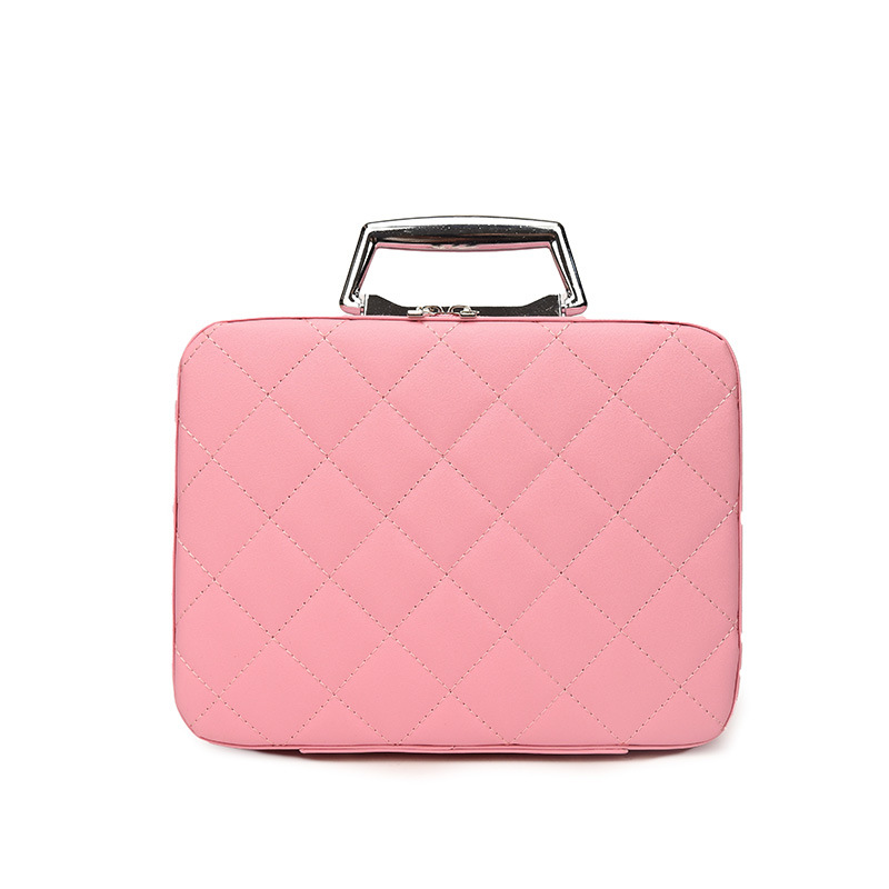 Rhombus-Embroidery Design Cosmetic Bag With Handle And Mirror Fashion Large Capacity Portable Make-up Storage Bags For Women