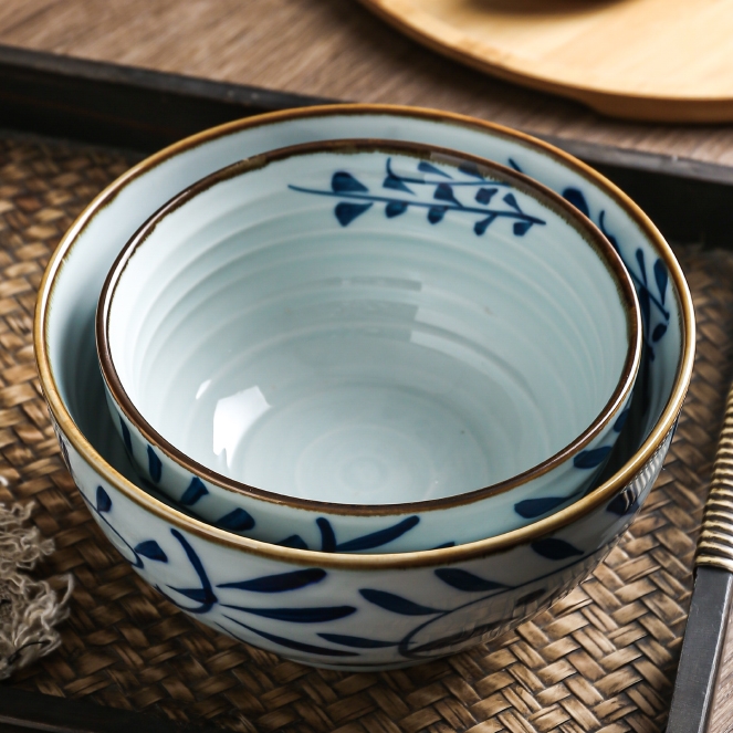Rhynchophylla Rib Ceramic Bowl Household High Temperature Resistant Microwaveable
