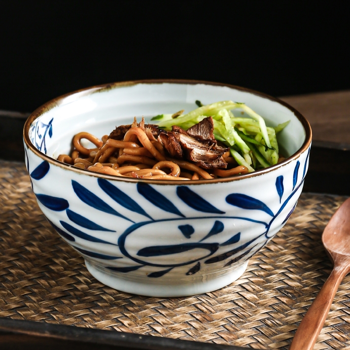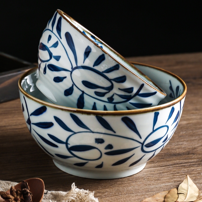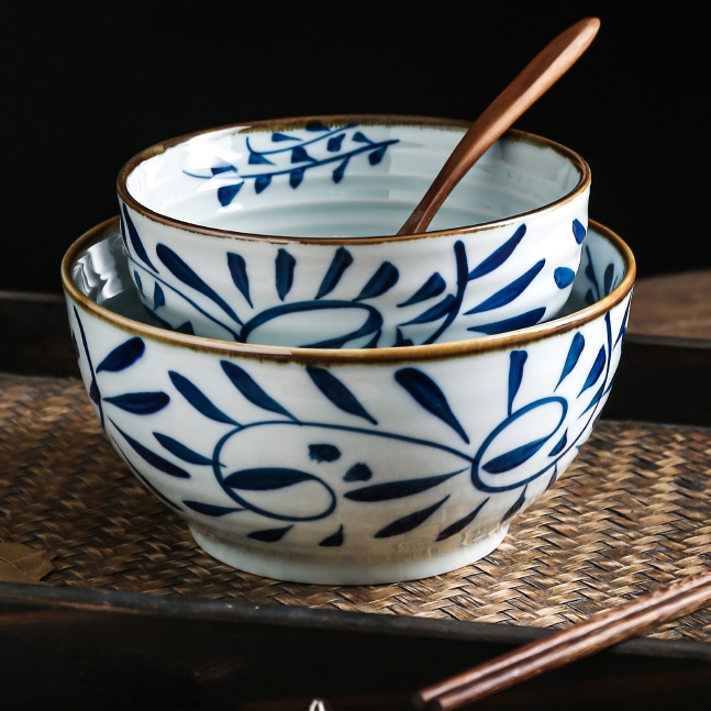 Color classification: 6-inch blue and white rhynchophylla rib bowl 7-inch blue and white rhynchophylla rib bowl