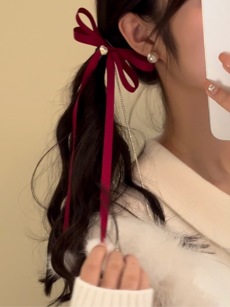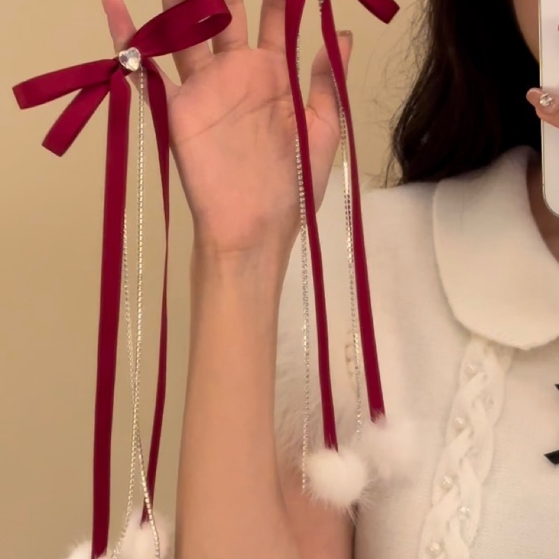 Product information:Color: Black one pack, red one pack Applicable population: Female Material: Plush Popular elements: Bow