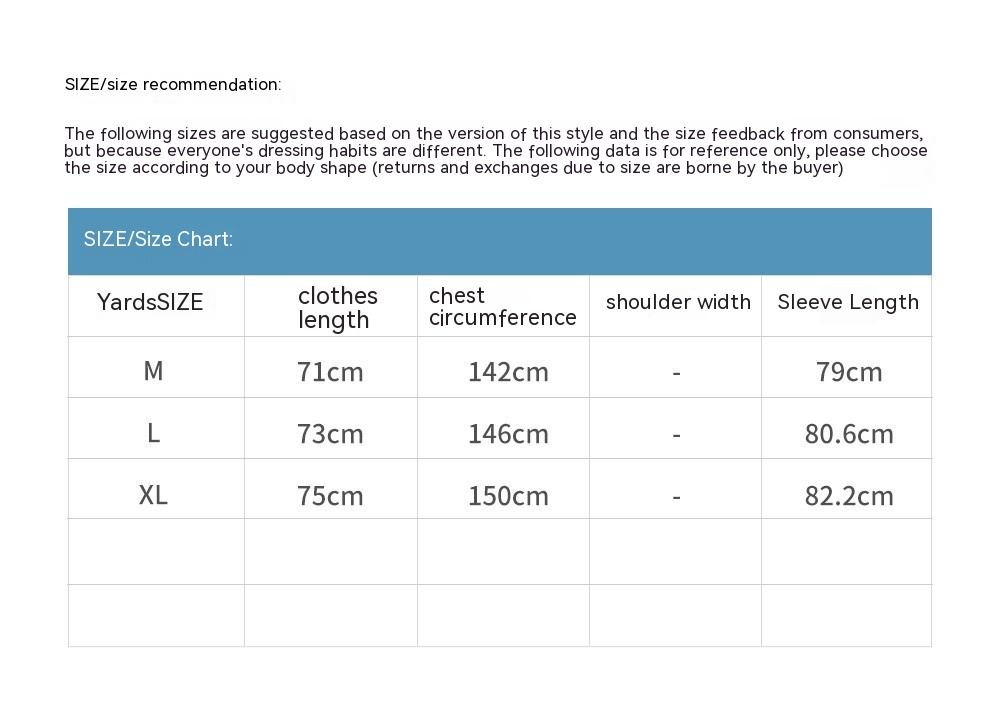 1. Asian sizes are 1 to 2 sizes smaller than European and American people. Choose the larger size if your size between two sizes. Please allow 2-3cm differences due to manual measurement. 2. Please check the size chart carefully before you buy the item, if you don't know how to choose size, please contact our customer service. 3.As you know, the different computers display colors differently, the color of the actual item may vary slightly from the following images.